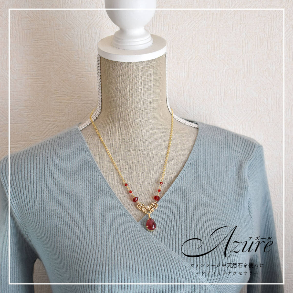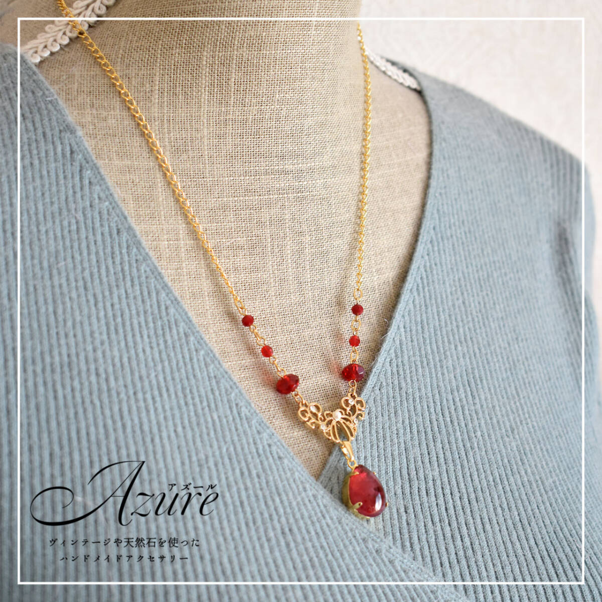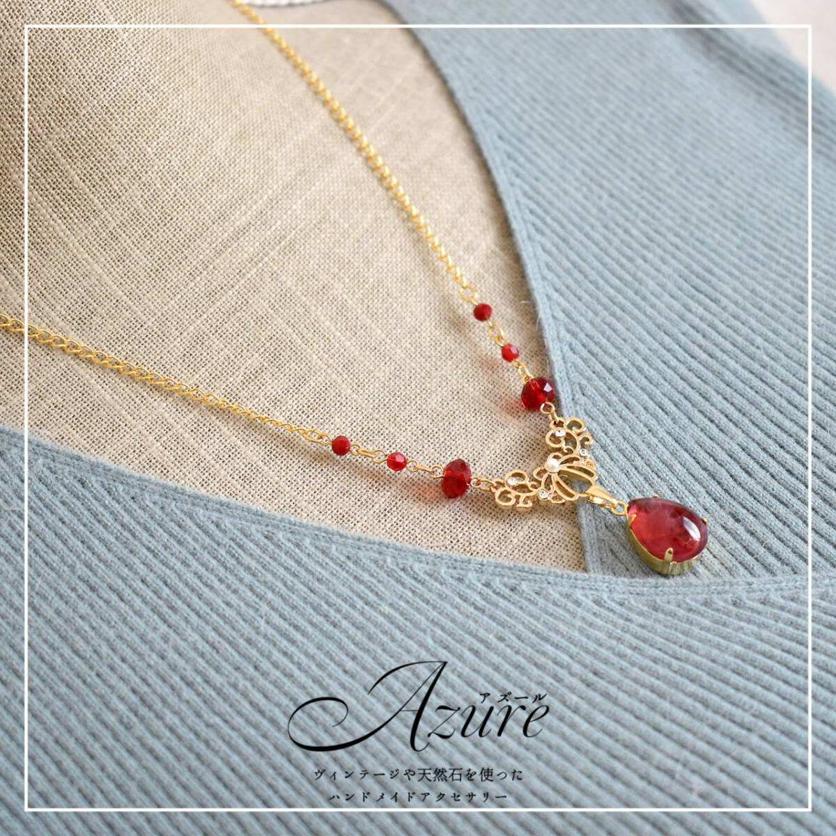 ■ ヴィンテージ/レッドスムースガラス ネックレス ■
