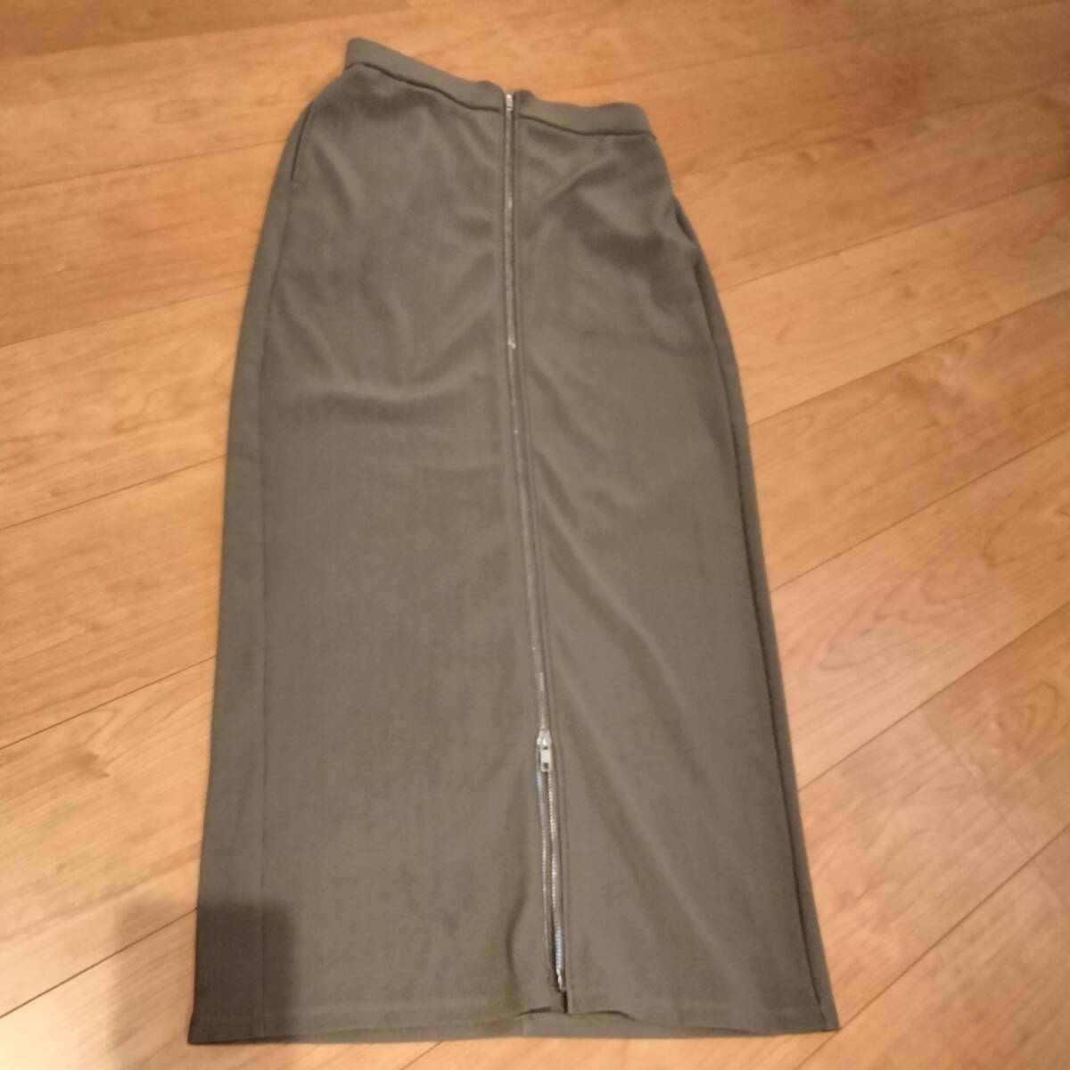 ダブルジップ デザイン 美スタイル 上品 ロング ジャージ素材 タイト スカート L です。