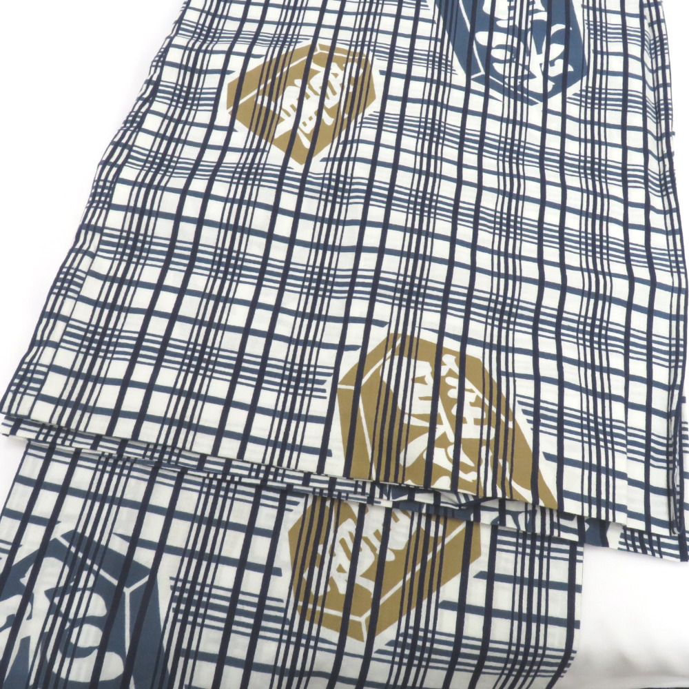 浴衣 男性浴衣 白×紺 将棋駒 格子 身長174cm~176cmの方におすすめ 夏物 綿 メンズ 仕立て上がり 身丈146.3cm |