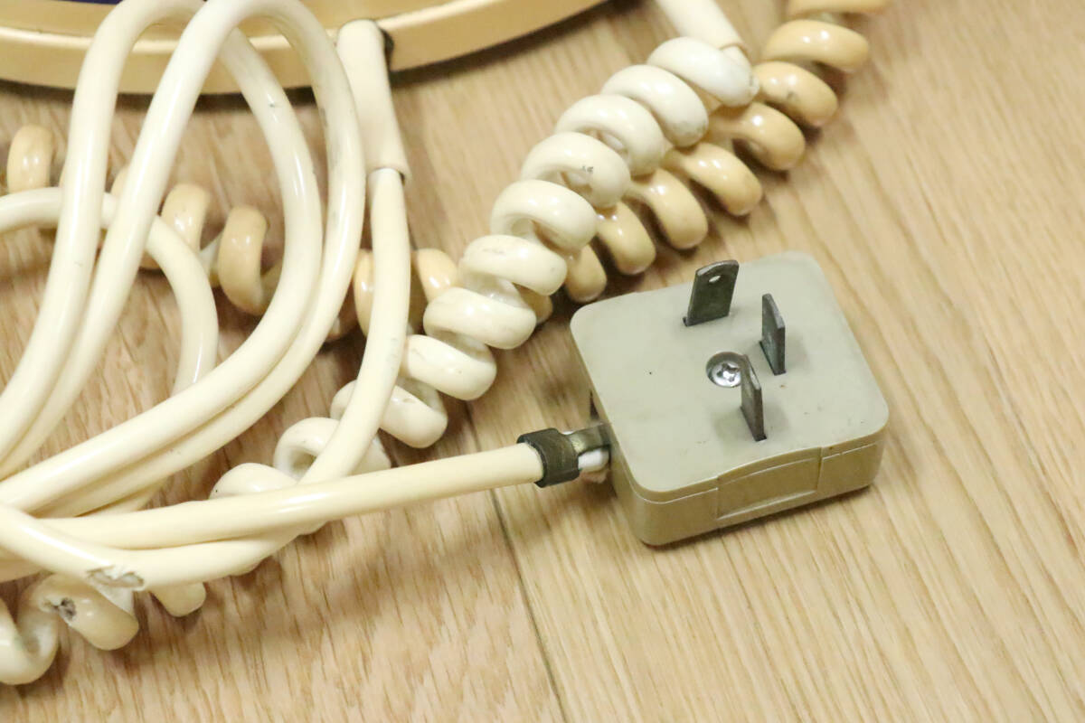 電話機になります。動作未確認のためジャンク品として出品致します。中古のため全体的に汚れ、傷、剥げ、傷みがあります。おしりの部分に書き込みがあります。写真で判断お願いします。写っている物が全てになります。大きさは直径23㎝、高さ39㎝です。