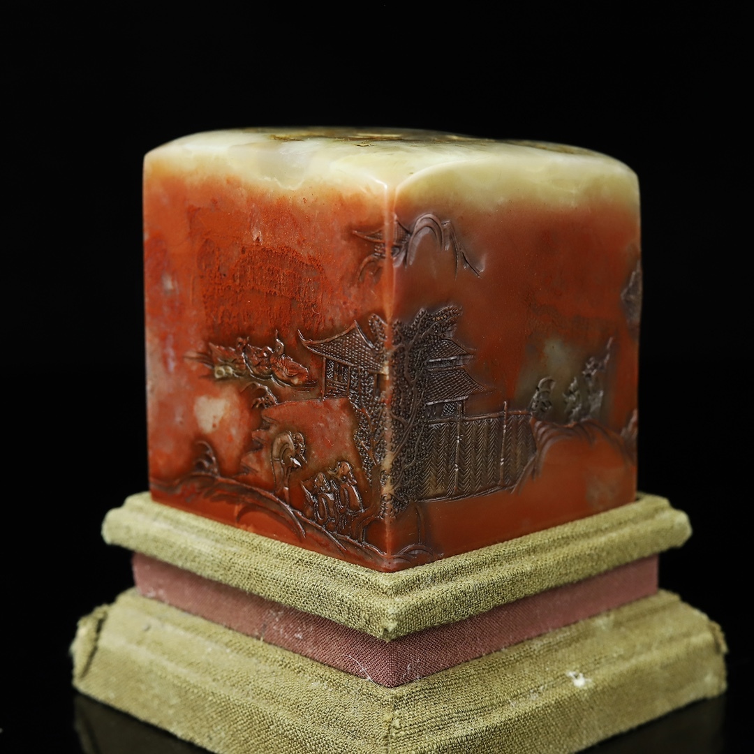 *珍品旧蔵* 【清代篆刻家 趙之深 字:次閑】寿山芙蓉石 彫刻人物故事 薄意印章 天然石 篆刻 古印材 極細工 中国古玩 骨董品 古美味H48