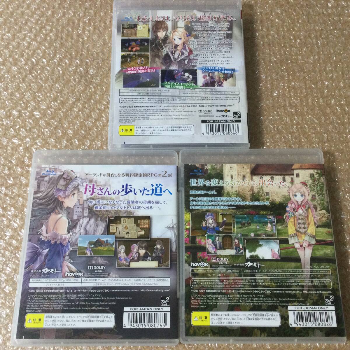 ○中古品、目立つ痛みはありません。PS3版で発売されている、アーランドの錬金術士3作セットです!ロロナ、トトリ、メルルのそれぞれの物語が楽しめます!!調合も冒険も、完全3Dで始まる、PS3最初のアトリエ、アーランドシリーズ3部作です!(^^)3本セットでこの機会に気になっていた方是非!コレクション整理のため出品しております。他出品物まとめてお取引可能です。欲しい方にお譲りできれば嬉しいです。(^ ^)