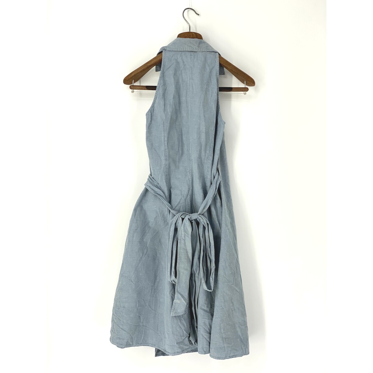 A7077/極美品 春夏 RALPH LAUREN ラルフローレン コットン ノースリーブ ラップ フレア ミモレ丈 マキシ丈 ワンピース 7 青/レディース