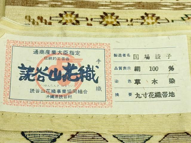 【正絹】 状態は接写画像のように 表地所々に薄い汚れがございます。 600年の歴史を誇る読谷山花織は、 絶滅寸前に読谷村の情熱ある有志によって 昭和39年、約90年ぶりに「幻の花織」として復活しました。 当初は愛好会だった組織も読谷山花織事業協同組合として発展し 現在は県指定無形文化財、 また経済産業大臣指定伝統工芸品として 全国に広く知られるようになりました。 大変上質な極上の逸品になります。 お安く出品致しますので、是非この機会にいかがでしょうか? |