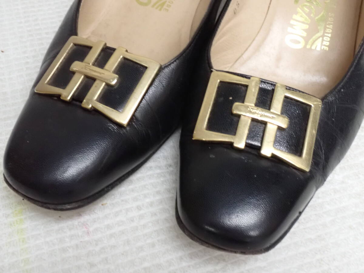 Salvatore Ferragamo サルヴァトーレフェラガモ パンプス 6 1/2 約24.5cm ブラック レディース レザー 定形外郵便全国一律920円 J16-MA 中古品です。 小さなシミやレザー部分のシワ、中敷きや内側の黒ずみや汚れ、かかとの減りや欠けなどの劣化がございます。 使用には劣化部分の交換が必要です。 ○素材 レザー ○サイズ 6 1/2 約24.5cm ヒール高 約4.5cm 重量 約435g ※素人採寸の為、多少の誤差はご了承ください。 詳しい状態などは画像を参考に判断してください。 状態の説明はあくまでも出品者の主観ですので、神経質な方のご入札はお控え願います。 写真に写っている物がすべてですので、その他に付属品などはありません。 ※ご使用のパソコン、モニターなどの環境によっては実際の色と若干異なって見える場合がございます。 お探しの方はお見逃しなく! この機会にぜひどうぞ! ノークレーム・ノーリターンとなります。 よろしくお願いします。 特定商取引法に基づく表記 【会社名】 株式会社 西川殖産 【代表取締役】 西川 守 【古物営業許可】 兵庫県公安委員会許可 第631641300006号 【店舗】 エタニティ野里店 【営業所所在地】 兵庫県姫路市野里311-3 アクロポリスⅡ-1F 【連絡先】 079-222-7705 【営業時間】 午前10時~午後7時 【定休日等】 水曜日は定休日となっておりますので、火曜日の夕方から水曜日にご入金、ご連絡などをしていただいた方へのご連絡・発送などは翌日以降となってしまいます。 オークションにつきましても、火曜日の夜から水曜日にご落札していただいた方へのご連絡は翌日以降となってしまいます。 ※その他、GW・お盆・年末年始などもお休みを頂いておりますので、その期間中などもご連絡・発送などできません。(※休みの期間はその都度異なりますので、お急ぎの方は事前にご質問などでご確認していただけますよう、よろしくお願いします。) こちらの都合で誠に申し訳ありませんが、あらかじめご了承いただいた方のご入札をお願い致します。 | |||