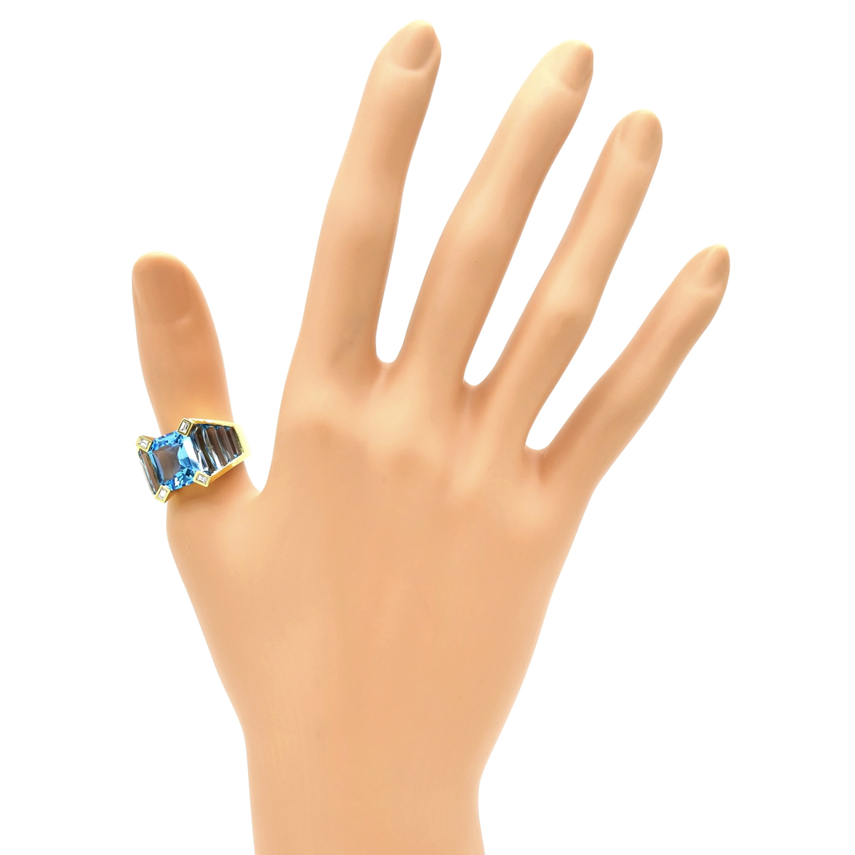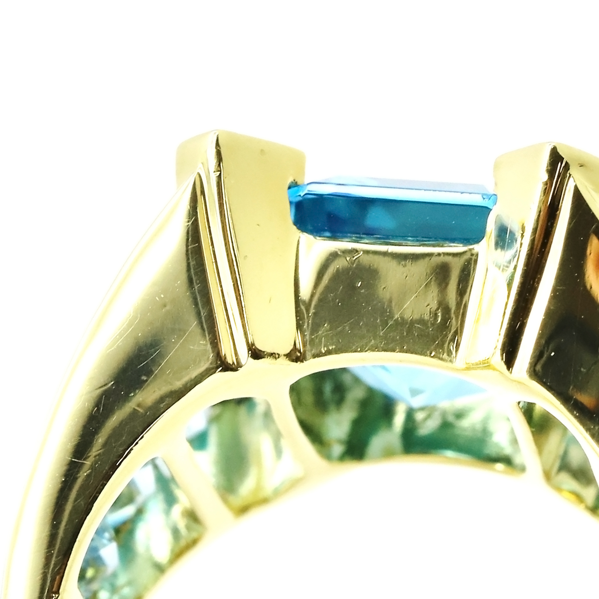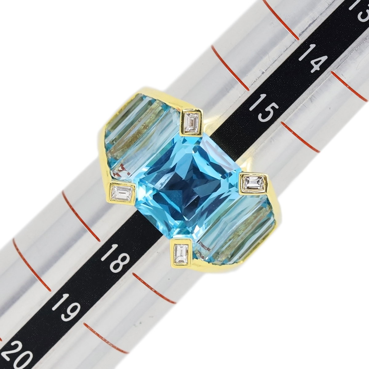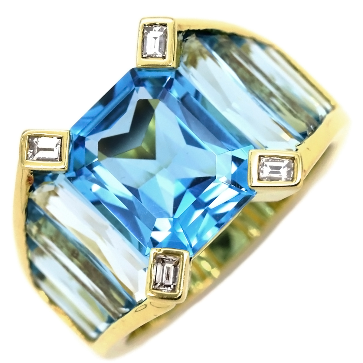 リング 指輪 ブルートパーズ ダイヤモンド リング K18YG ゴールド 青 750 バゲット 中古