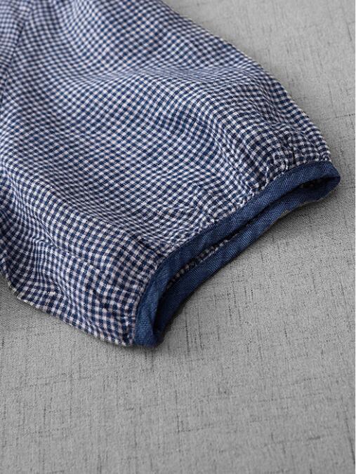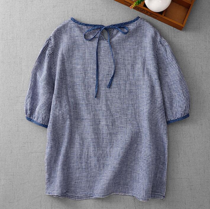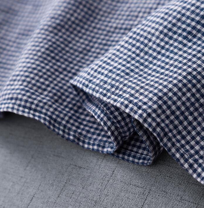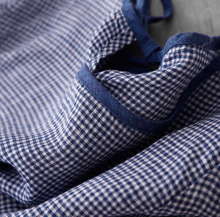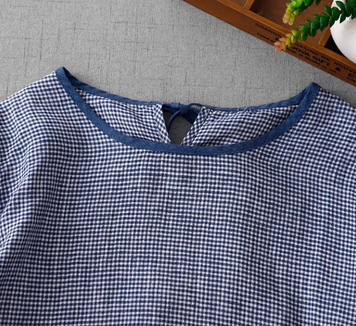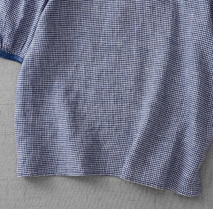 新入荷人気品チュニック ワイシャツ トップス 麻100% ゆったり オシャレ フリーサイズ ナチュラル 通気性手触り抜群 チェック柄 ブルー