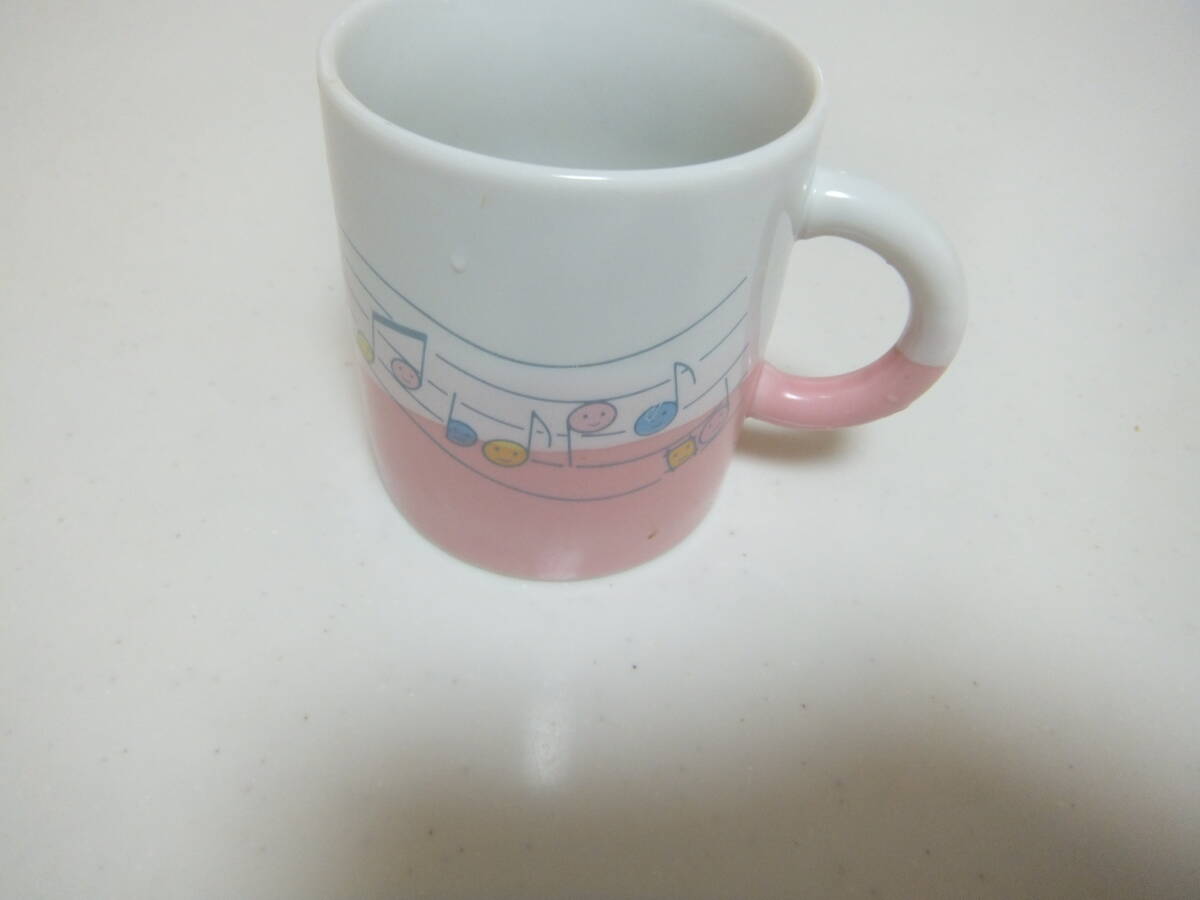 配送しません!直接取引のみ!音符デザイン マグカップ ホワイト&ピンクデザインです。音楽好きな方はぜひ。使用頻度は他のものを使っているため高くはないですが、底に使用感はあります。