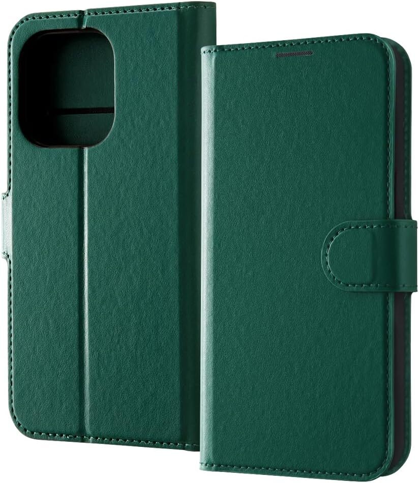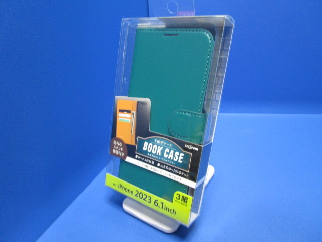レイアウト iPhone15 Pro ケース 手帳型 薄型 軽量 カード収納 4枚 マグネットフリップ スタンド機能 カバー/グリーン
