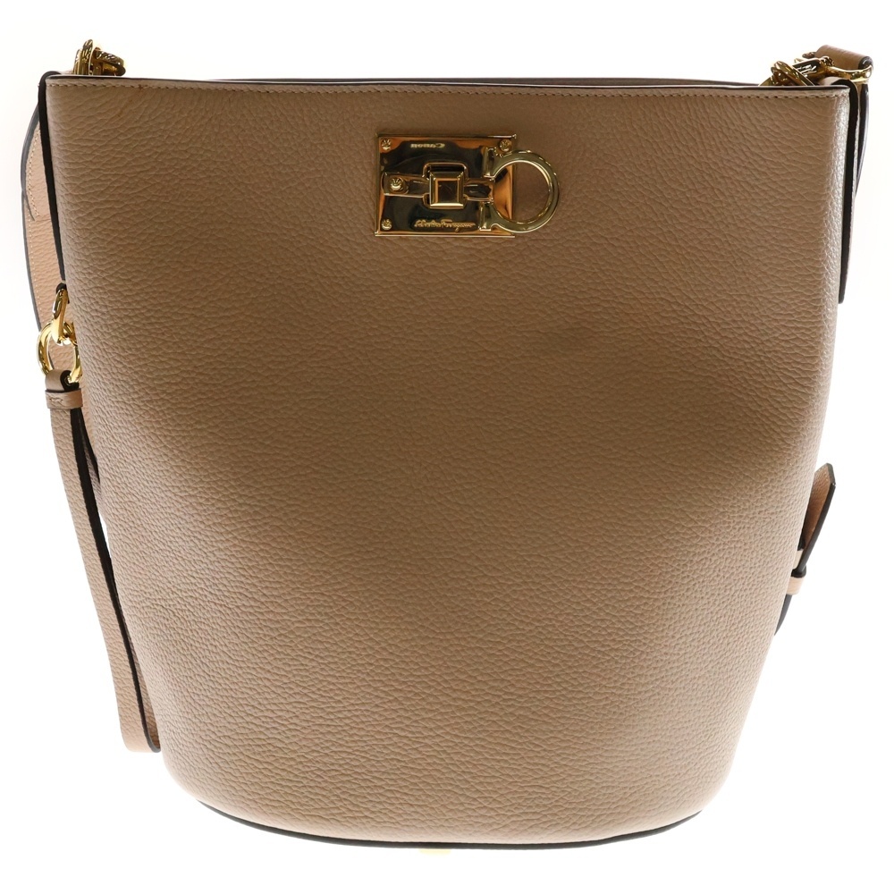 サルヴァトーレ フェラガモ ガンチーニ ザ スタジオバケット レザー ショルダーバッグ ゴールド金具 ピンク/ベージュ 21289