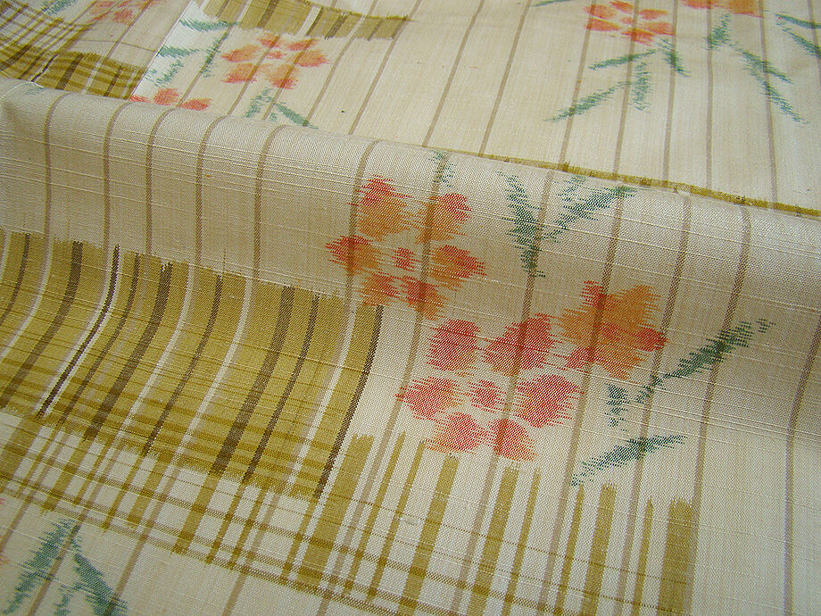 ★超大特価★単衣!帯や小物次第でコーディネートを愉しめる逸品!! 裄長め!暮らしに重宝する十日町紬のお洒落な紬着尺(正絹) B385★ | |
