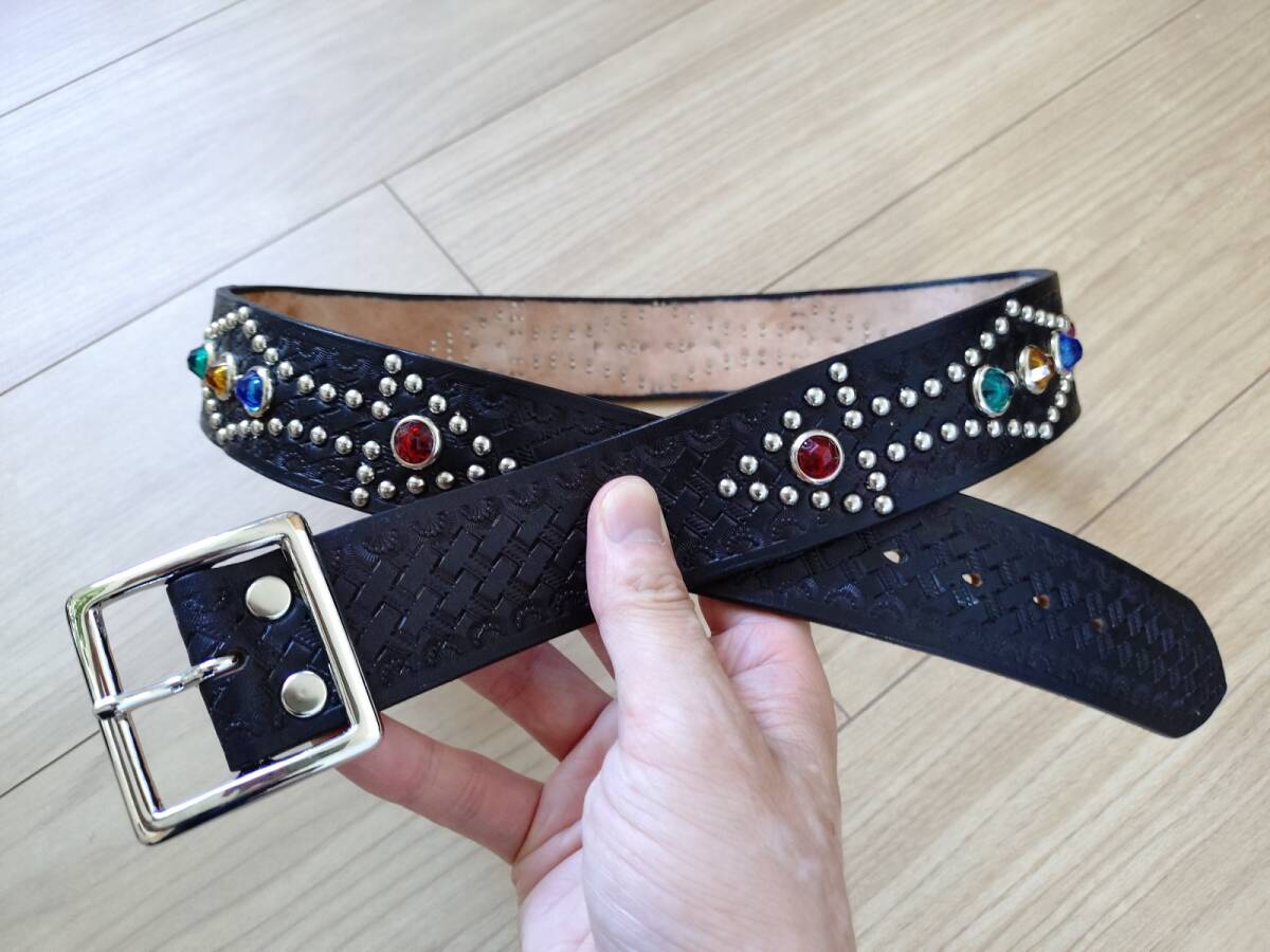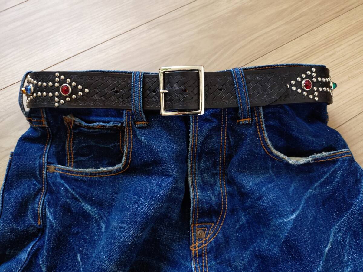 1930年代のデザインを参考に作ったカービングスタッズベルトです。