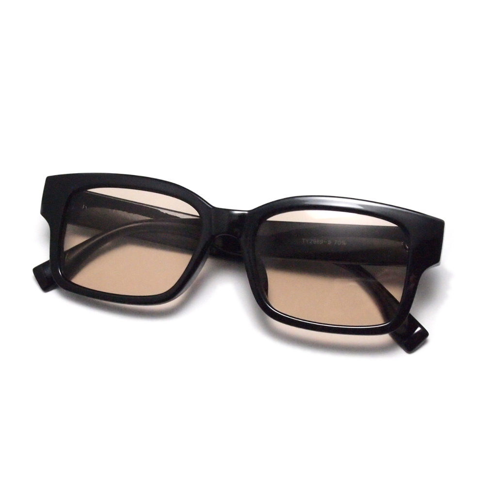 ライトブラウンレンズ サングラス 新品 大きめスクエア型 UVカット 薄い色 茶色 ライトカラー スモーク メンズ 紫外線 TY2969BR