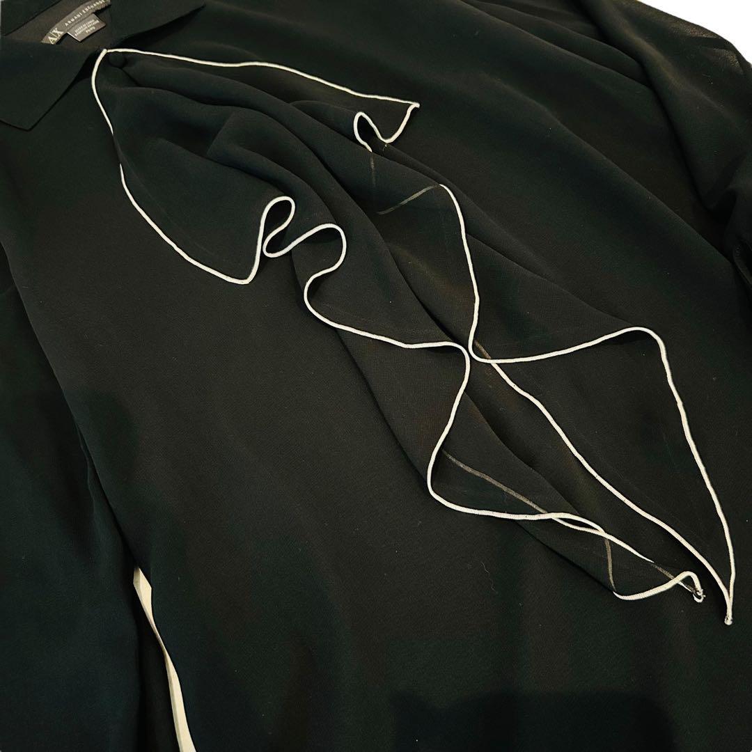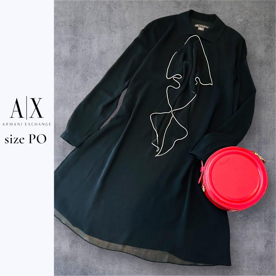 【美品】ARMANI EXCHANGE アルマーニ ワンピース ブラック 長袖 フリル POサイズ 日本M相当