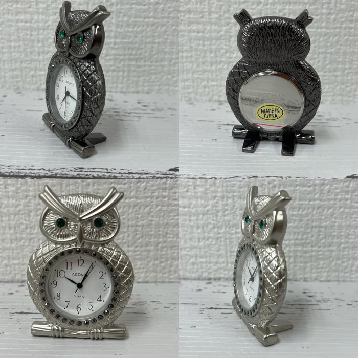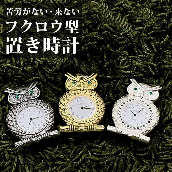 商品説明 | ・・昔から縁起が良いとされるフクロウ型の置き時計。不苦労=「苦労がない・来ない」という意味も相まって、たくさんの方に大好評。縁起物なので、大切な方への贈り物にもおススメ。 |