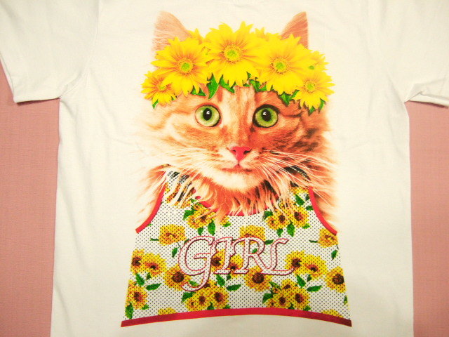商品名 | 横浜最新 可愛いひまわりと猫♪爽やか白T 魅惑のTシャツ M, L |