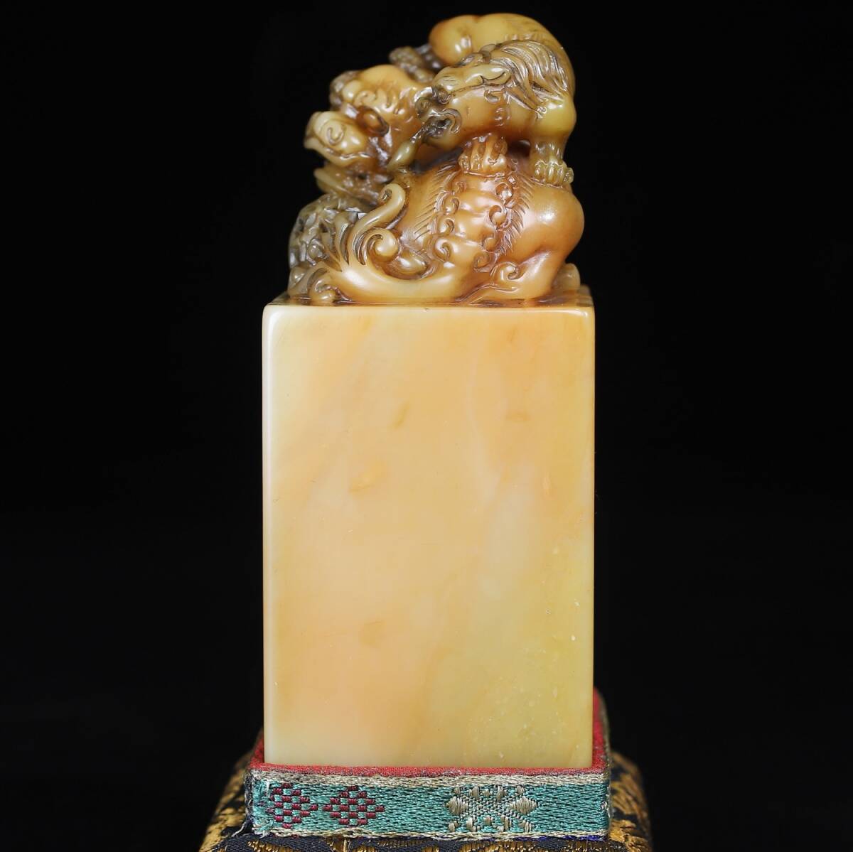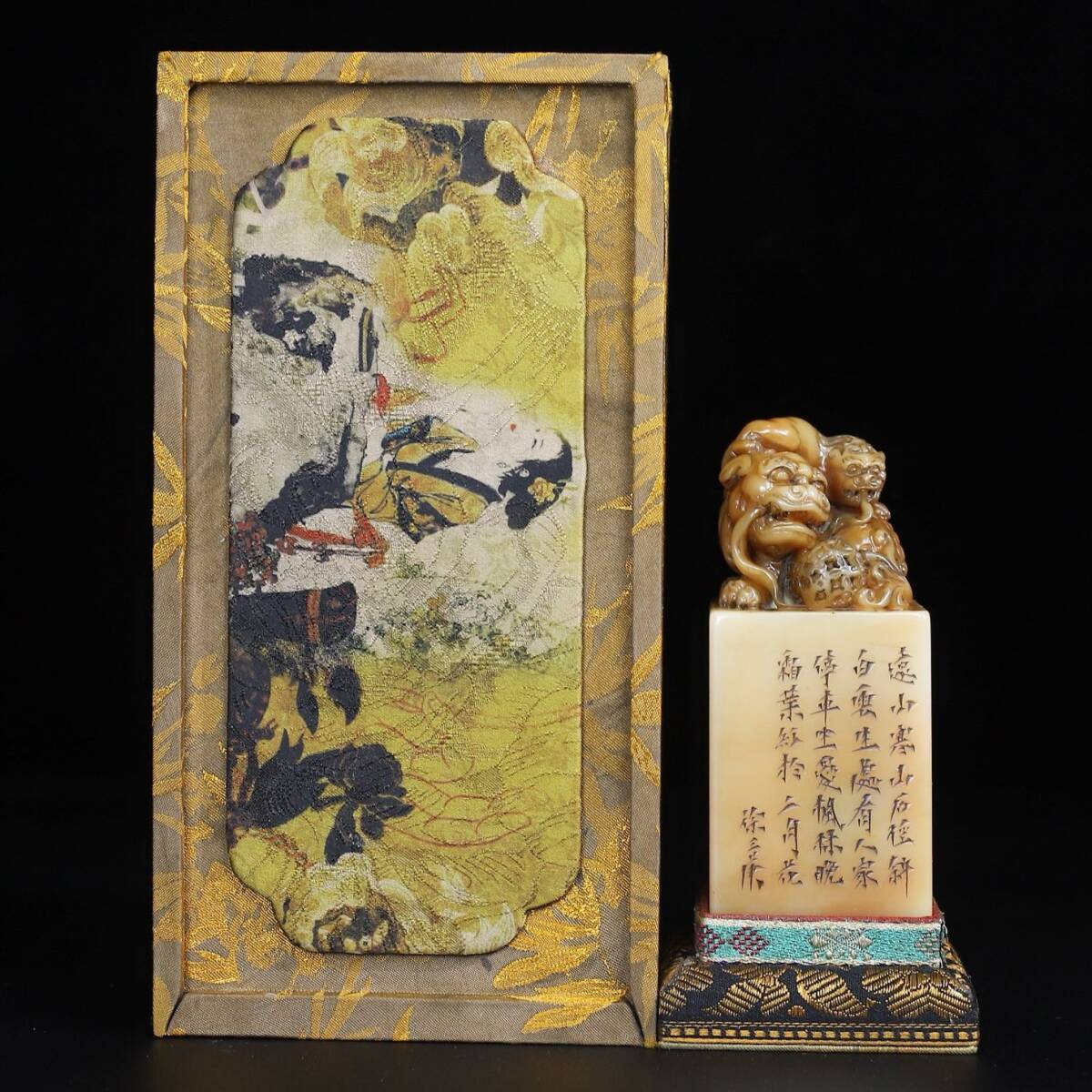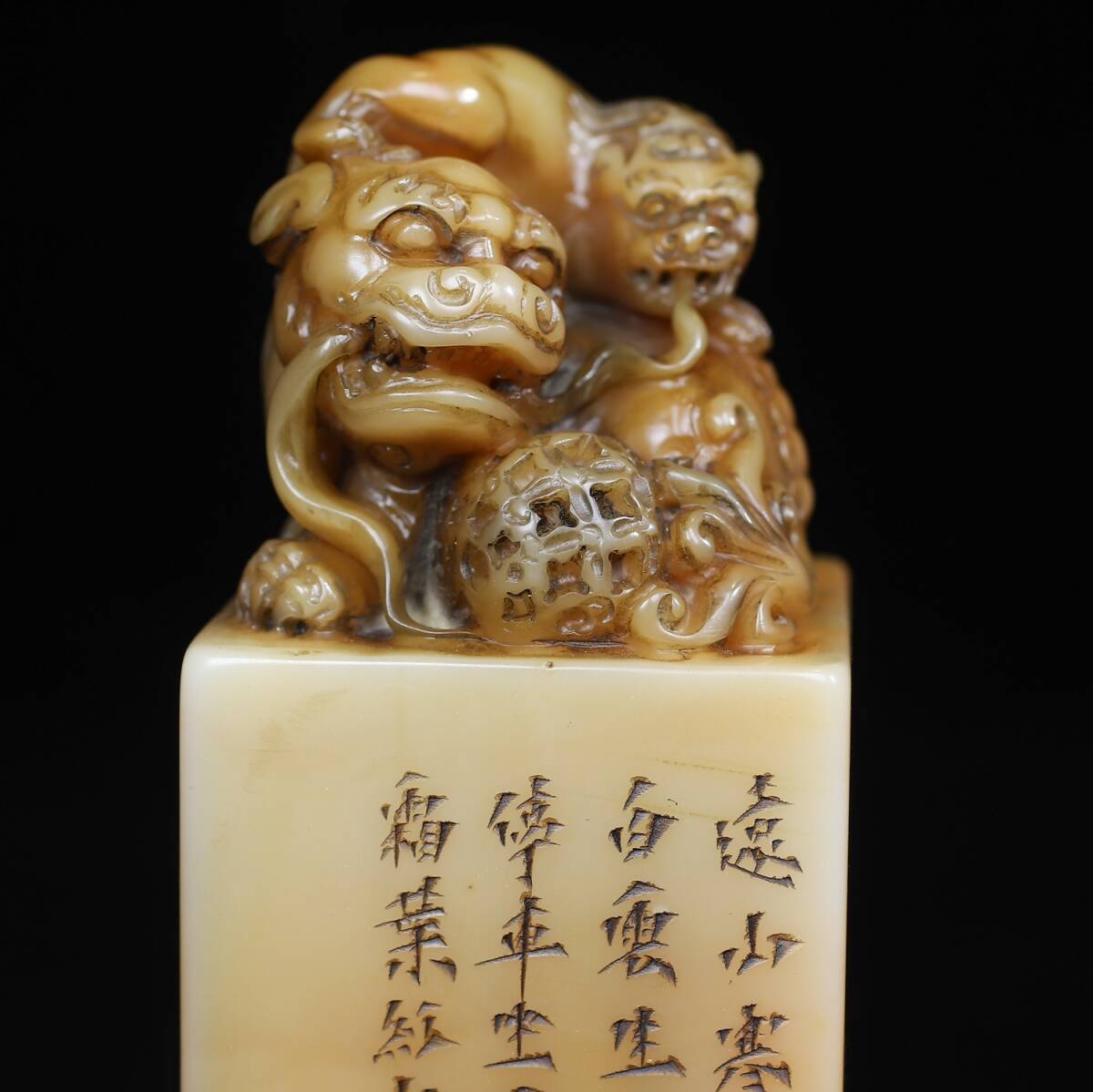 *珍品旧蔵* 【清代篆刻家 徐三庚】寿山石 印鑑 《雙獅戲綉球》 高レリーフ 天然石 手彫 篆刻 古印材 極細工 中国古玩 骨董品 古美味 H48