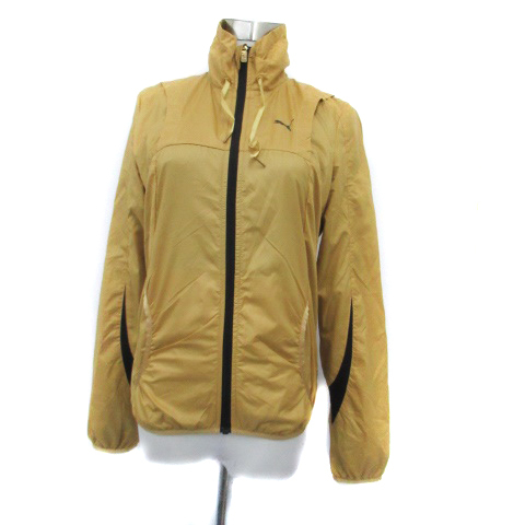 プーマ スポーツウエア ウィンドブレーカー ジャケット スタドカラー ミドル丈 ロゴプリント M 黄色 黒 レディース