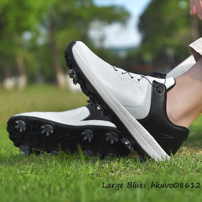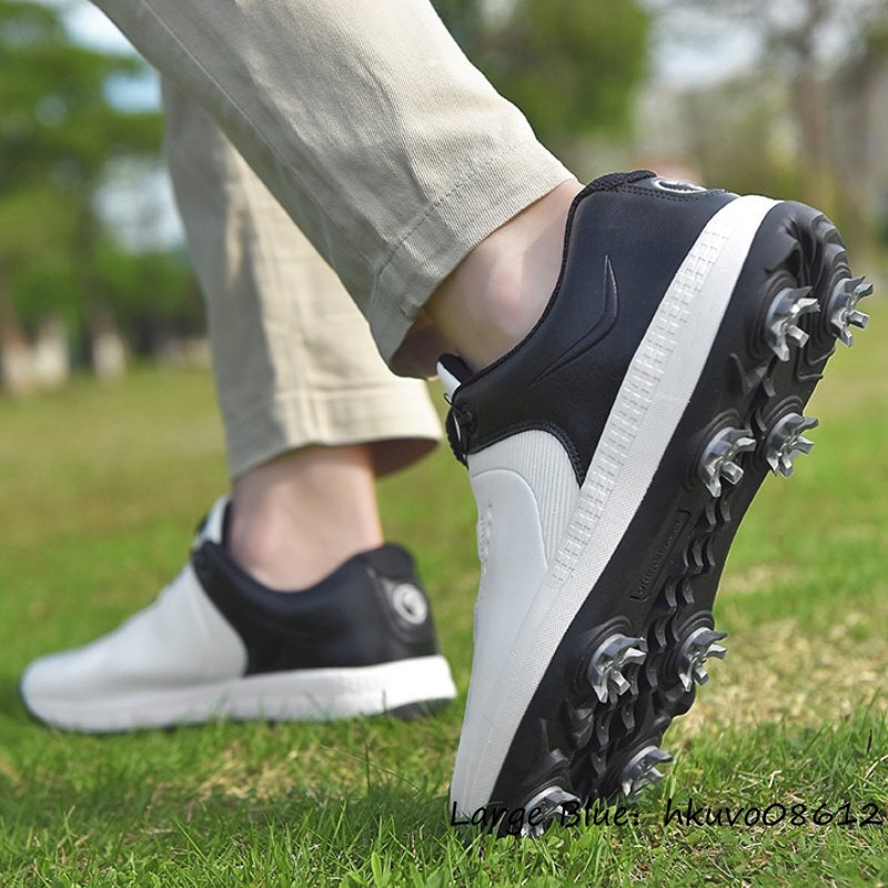 超希少★メンズ ゴルフシューズ 強いグリップ 運動靴 ダイヤル式 スニーカー スポーツシューズ フィット感 防滑耐磨 撥水幅広 白/黒 26.5cm