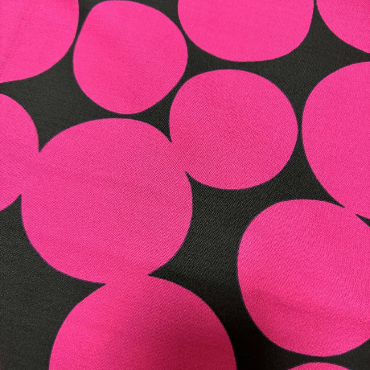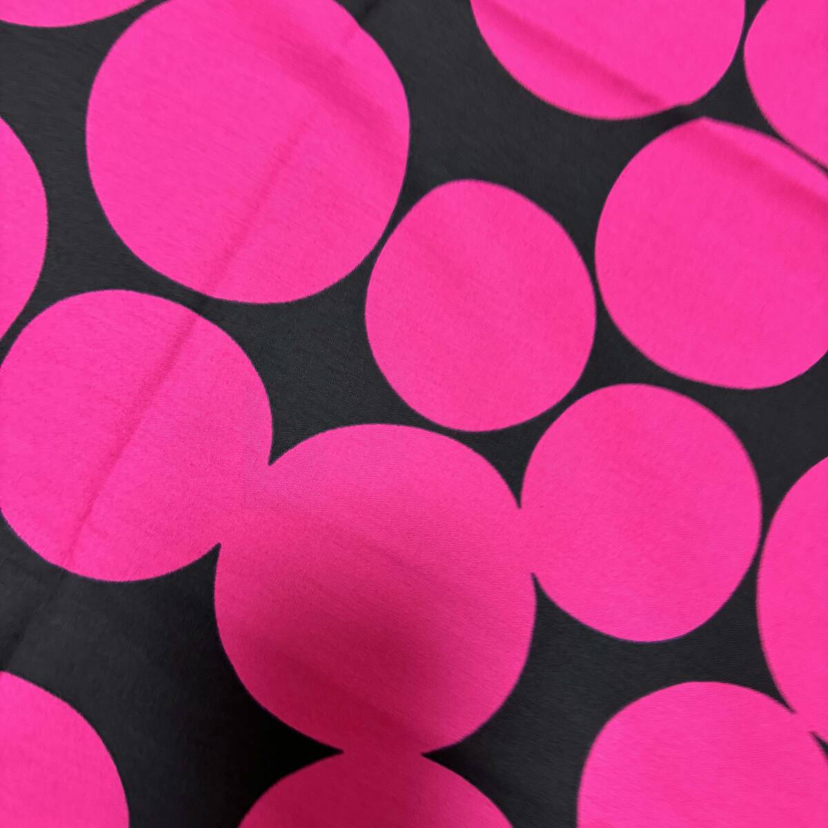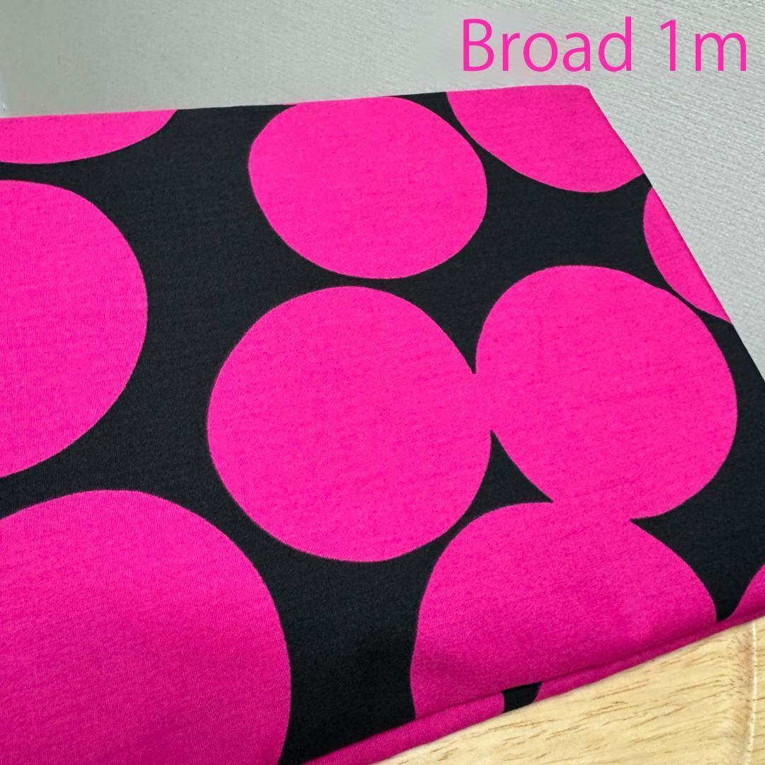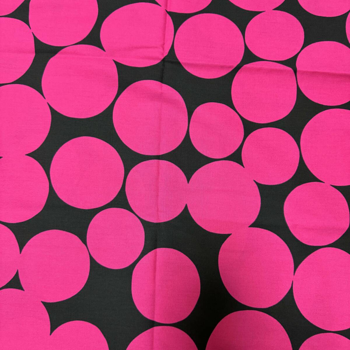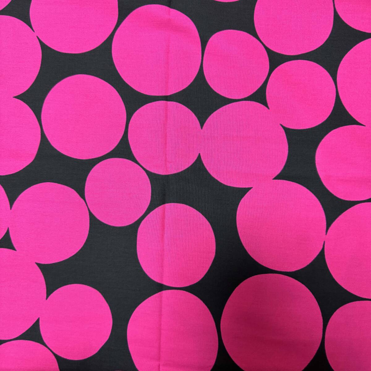 特価★POPなランダムドット柄1m綿ブロード生地はぎれブラック地ピンク水玉★布黒
