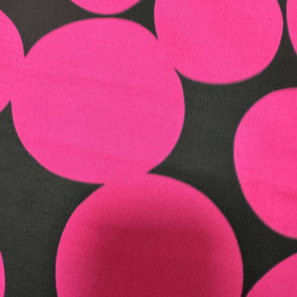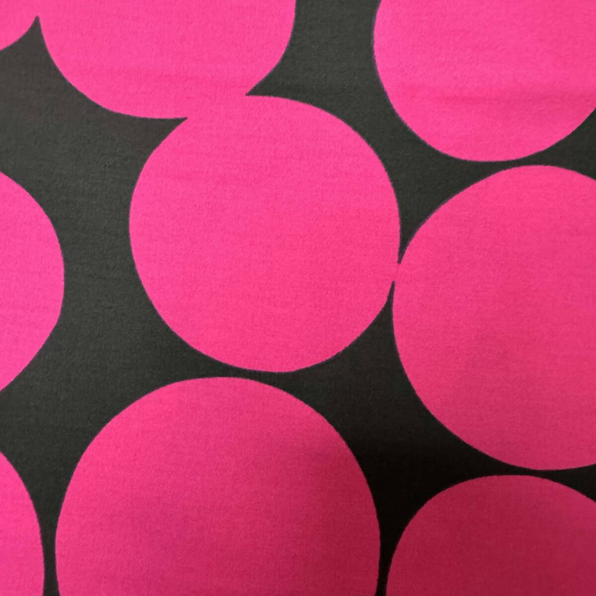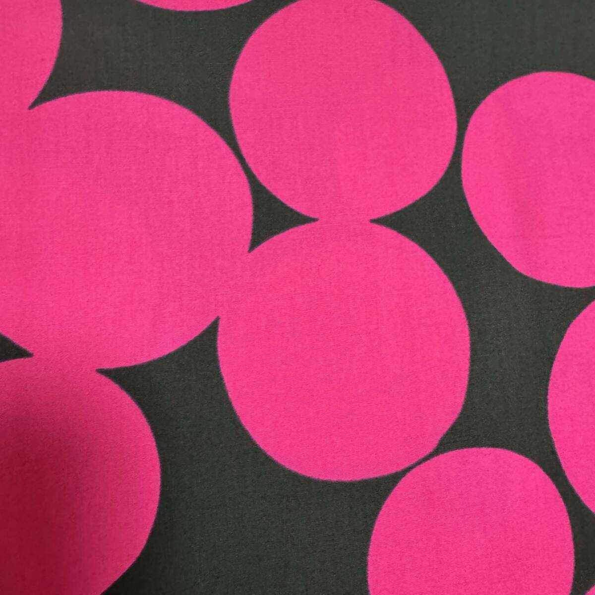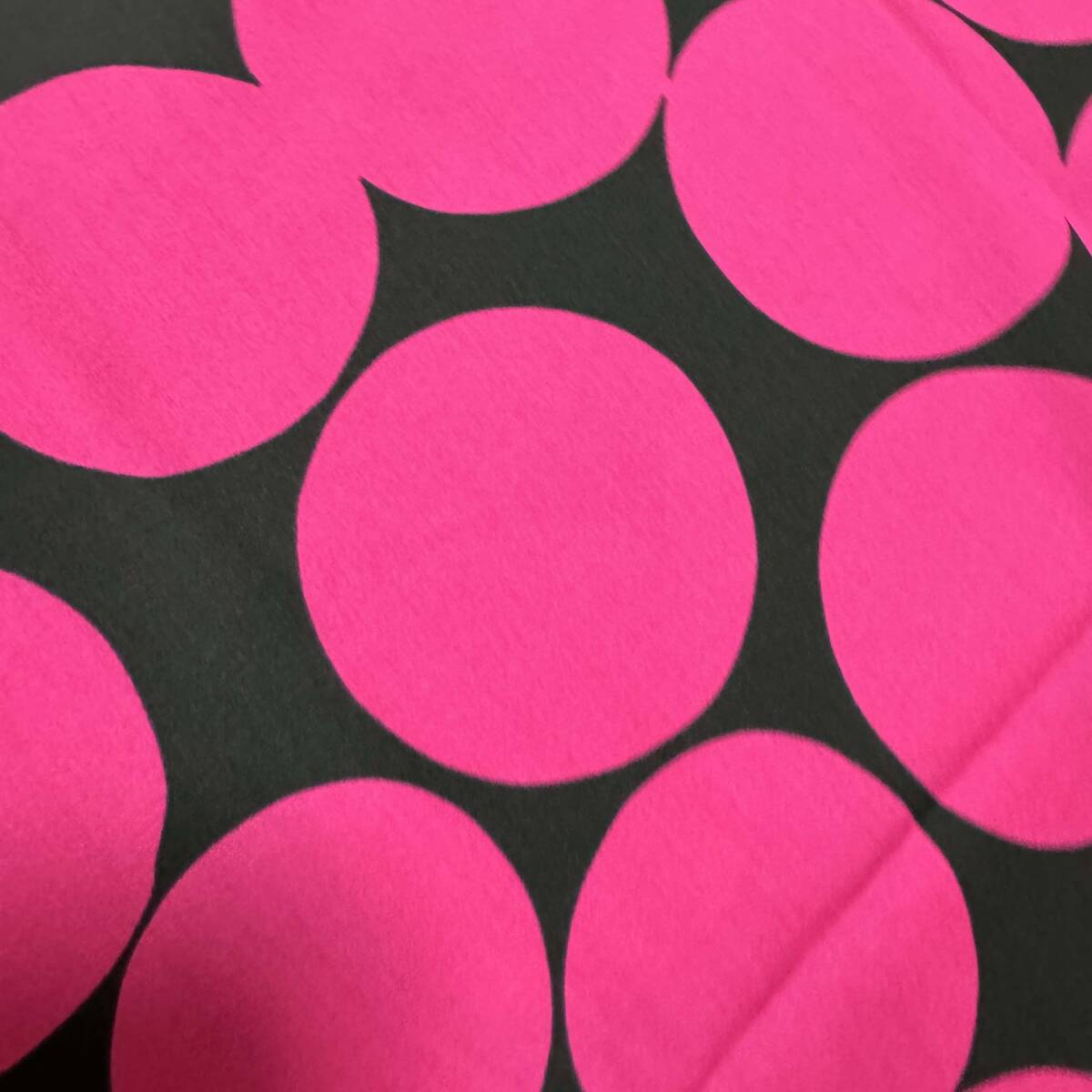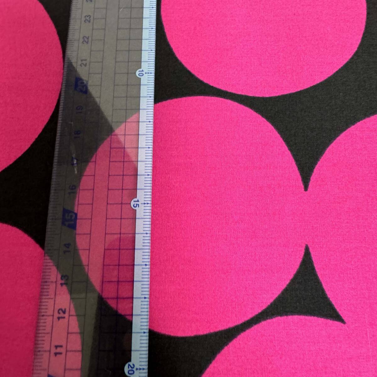 特価★POPなランダムドット柄1m綿ブロード生地はぎれブラック地ピンク水玉★布黒