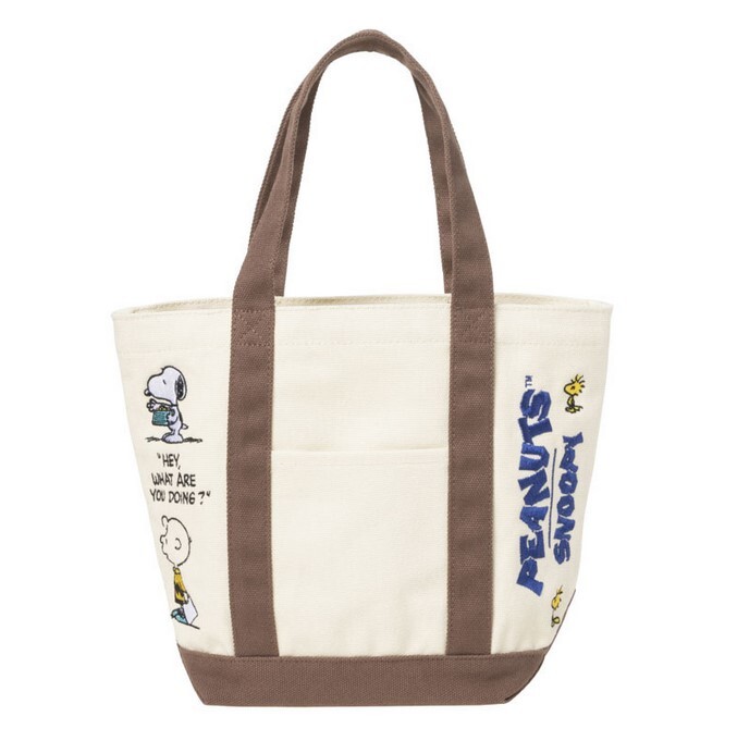 スヌーピー SNOOPY 刺繍入り ミニ トートバッグ ブラウン ランチバッグ かわいいバッグ ミニバッグ 内外 ポケット付き