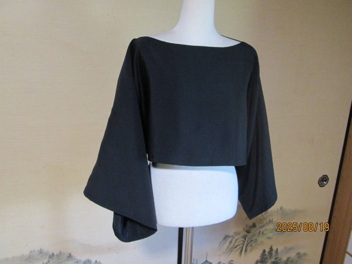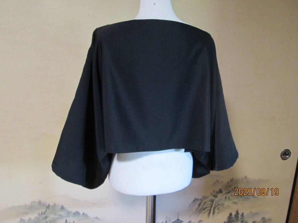 新品未仕立ての正絹黒江羽織の黒生地から シンプル被りボレロにリメイクしました。