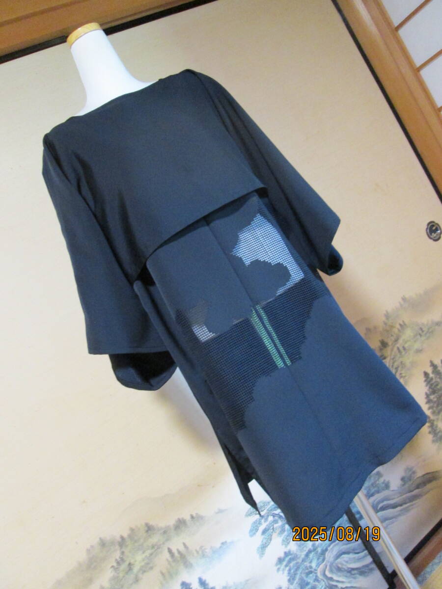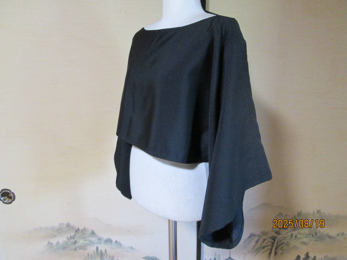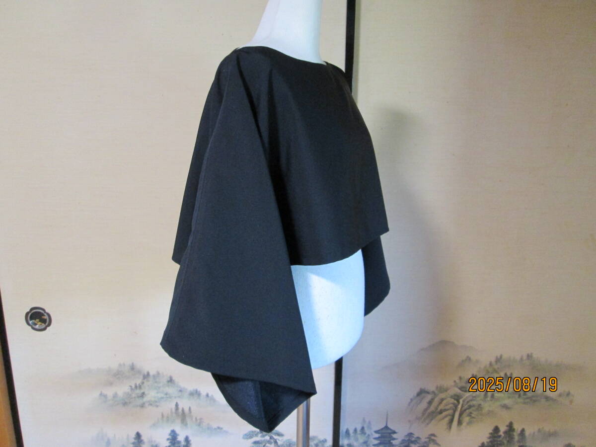 新品未仕立ての正絹黒絵羽織から定番シンプル被りボレロ!着物リメイク!ハンドメイド!黒!同生地でチュニックワンピースセットも出品中
