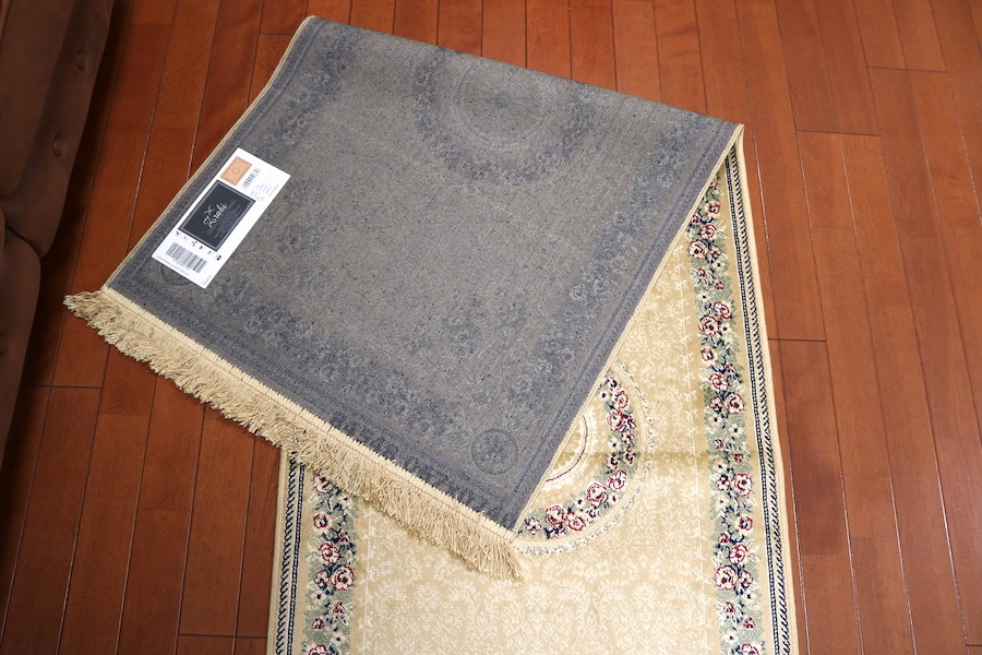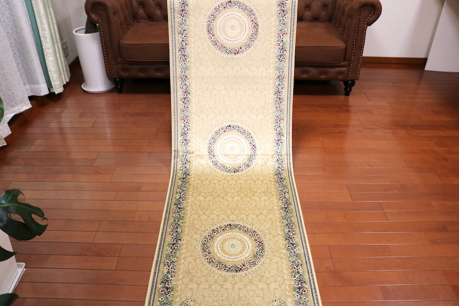 原産国:ベルギー サイズ:約67cm×約240cm 厚さ:約4mm 素材:100%Man made Silk(viscose) ベルギー製の絨毯はクオリティが高く世界3大メーカーの一つとして 世界的に有名です。 ベースのお色はゴールドになります。 美しく色鮮やかななデザインはとても華やかです。 お部屋の雰囲気を変えたい人にお勧めです。 とても頑丈な作りなので長くご使用頂けると思います。 お手入れも簡単で普通に掃除機をかけて頂いても大丈夫です。 汚れが目立つ場合は硬く絞った雑巾で拭いて頂ければと思います。 触り心地がとても良く適度な艶があり 光の加減や見る角度によって絨毯の表情が違ったりするので 眺めていても楽しめるかと思います。 コンパクトに畳めたりしますので収納時や 気分を変えて衣替えの様に絨毯を入れ替える事も 出来ると思います。 冬は暖かく、夏は涼しいので1年中お使い頂けると思います。 他にも色んなデザインと大きさを出品しておりますので よかったら見てください。 新品未使用品になりますが5枚目の写真のように 房の端が糸がほつれている箇所があり房のラインが均等でございません。 ご理解頂ける方入札よろしくお願い致します。 多少のシワや糸のほつれがある場合がありますので ご了承くださいませ。 送料は何枚購入されても、送料無料で発送させて頂きます。 交換、返品対応は出来かねますのでご理解頂ける方 ご入札よろしくお願い致します。 #カーペット #ラグ #玄関マット #ペルシャ | |||