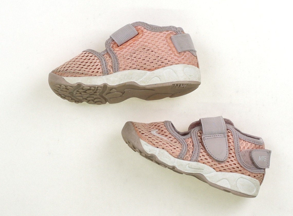 実際のサイズ表記は13cmです。ソール全体薄汚れています。つま先周りも薄汚れていて、スウォッシュ横に汚れあり。やや型崩れもありますが、まだお使いいただけそうです。