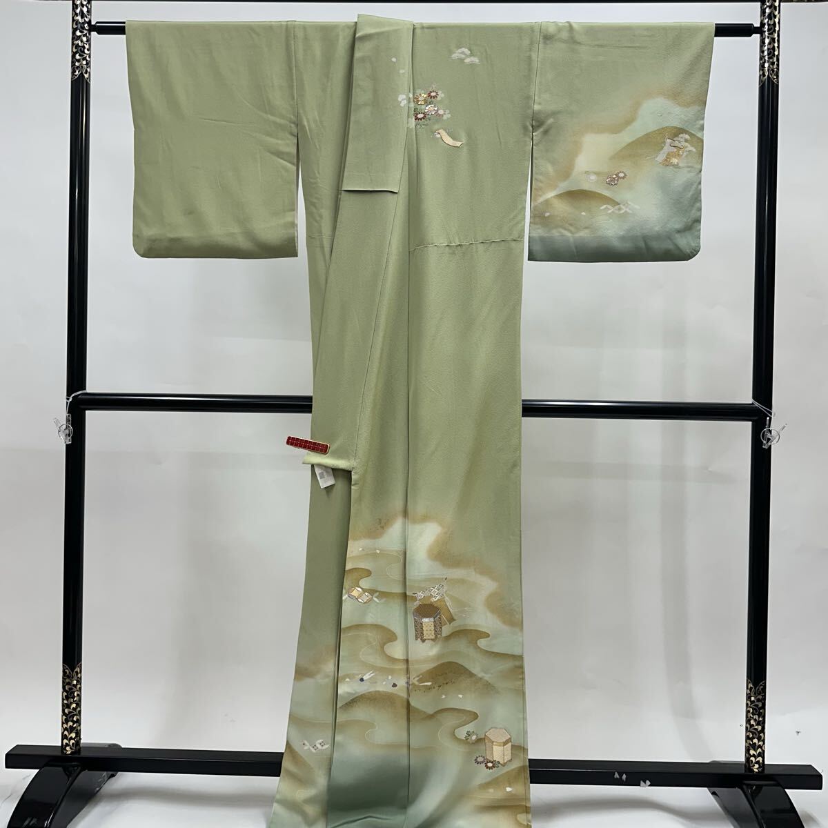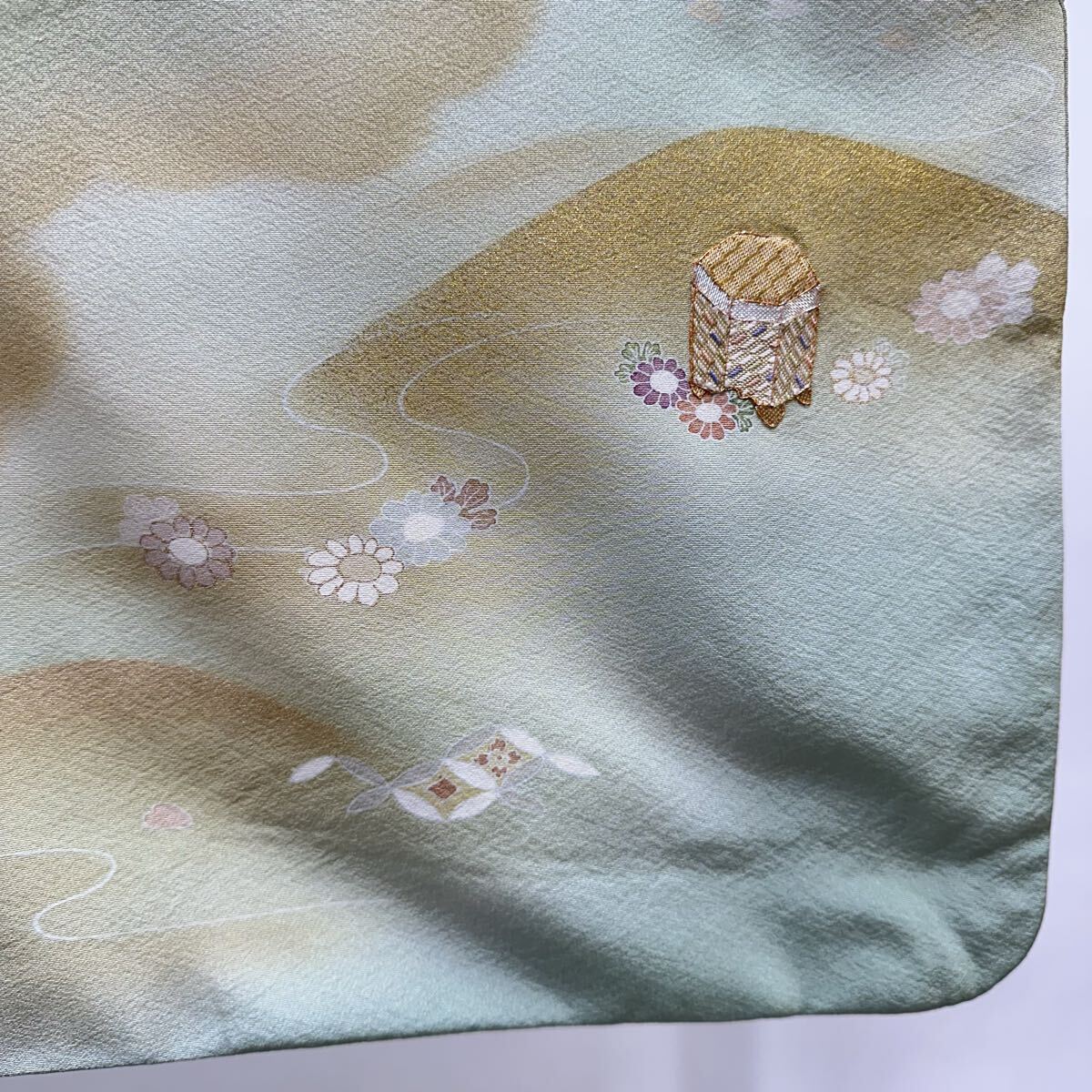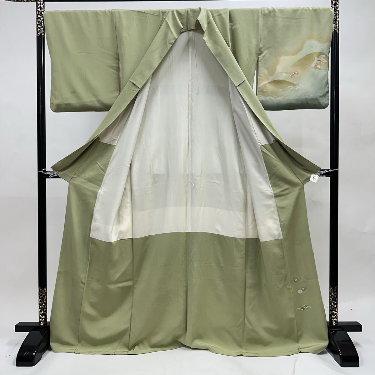 【七福】c777 訪問着 刺繍 正絹 袷仕立て 落款 金コマ刺繍 金彩 金糸 銀糸 着物 逸品 身丈 約166.5cm 裄 約66cm