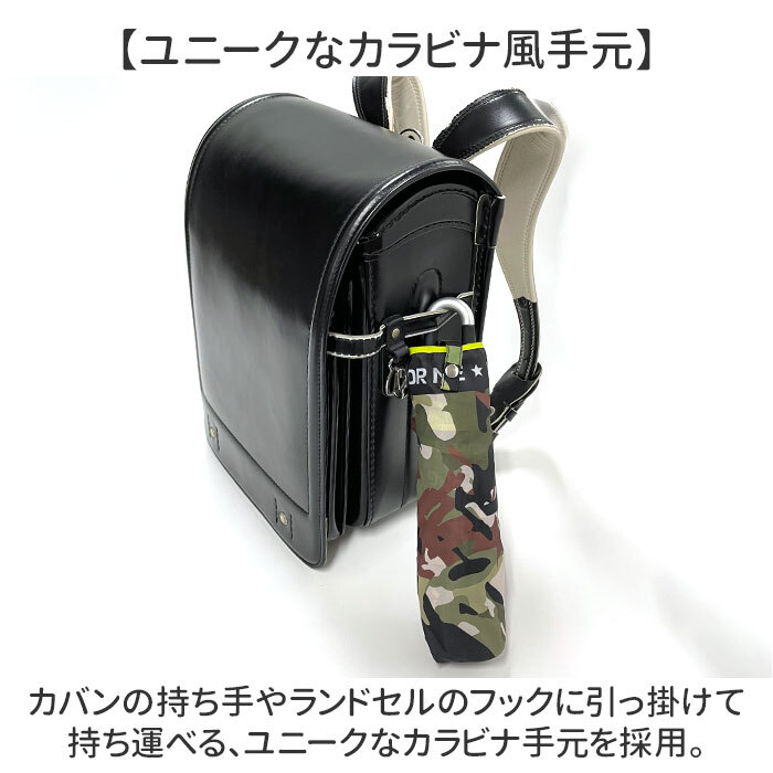 | 商品説明 | ・・【ランドセルのフックに掛けられる♪】 ・ランドセルに引っ掛けて持ち運びラクラク♪「カラビナ手元・キッズ折りたたみ傘」が新登場。 ・【ユニークなカラビナ風手元】 ・カバンの持ち手やランドセルのフックに引っ掛けて持ち運べる、ユニークなカラビナ手元を採用。 ・【着脱簡単、収納もスマート】 ・U字型のカラビナ金具を軽くひねるだけで着脱が簡単!壁掛けフックに掛けて保管する時にも便利。 ・【前が見やすい透明窓付き】 ・傘生地の1コマが透明窓になっているので、前が見やすく薄暗い雨の日の通学時も安心・安全♪ ・【キッズがラクラク持てる軽量設計】 ・重さ約220gの軽量設計!コンパクトに折りたためて、傘を広げれば直径約92cmの程よいサイズに。 ・【丈夫でしなやか、風に負けない!】 ・軽量なスチールとグラスファイバーを組み合わせた親骨パーツが強い風に負けない丈夫さのヒミツ。 ・【スムーズな手開きタイプ】 ・昇降口など混雑した場所でもスムーズかつ、安全に開くことのできる手開きタイプ。 ・【安全カバー付きで安心】 ・ハジキ部分には、開閉時にお子さまが指先や爪を挟む心配のない安全カバー付きだから安心。 ・【たたむ時も手間取らない!】 ・留めバンドは、お子さまがサッと傘生地をまとめやすい幅広タイプの面ファスナータイプ。 ・【伸び防止ベルト付きで安全】 ・付属の収納袋には、中棒シャフトが急に伸びてしまうことを防止する「伸び防止ベルト」付き。 ・【お友だちとお揃いでも大丈夫】 ・バンドの裏にはお名前ネーム付き♪お友だちの傘との取り違えを防いで、急な雨の日も慌てない♪ ・【雨の日が待ち遠しくなるデザイン】 ・男の子の憧れを散りばめた絵柄を鮮やかなパイピンクで縁取った、冒険心がくすぐられるデザイン。 |