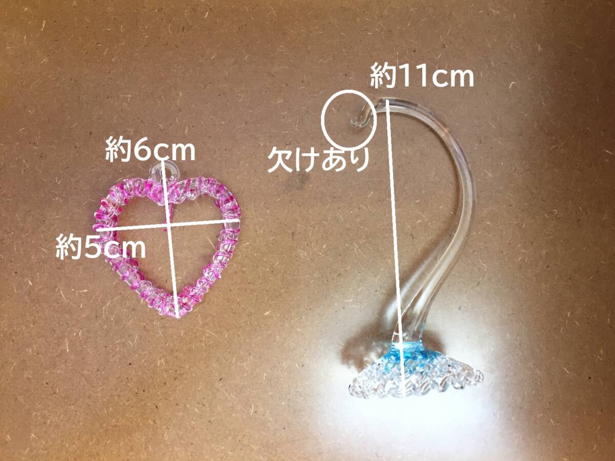 ◎サイズ 大きさは画像2を ご参照ください。 画像1のものまとめて 重量:約 28g ※多少誤差は生じると思います。 -------------- ◎状態 中古。 箱や保証書などありません。 メーカー名や作者の明記も 特に見当たりません。 ハートのところに小さなフック状の ものがあります。おそらくハートの中に 何かパーツがあったのかもしれません。 しかし画像1にあるものが全てです。 他の付属品はありません。 画像2のようにスタンドの先端に 指で触ると引っかかりを感じます。 おそらく先端は欠けたのだと 思います。先端を触る時は怪我を しないようにご注意ください。 上記の通り、おそらく付属品の欠損や 欠けがあるため、総評して 状態は悪い。にて出品します。 --------------