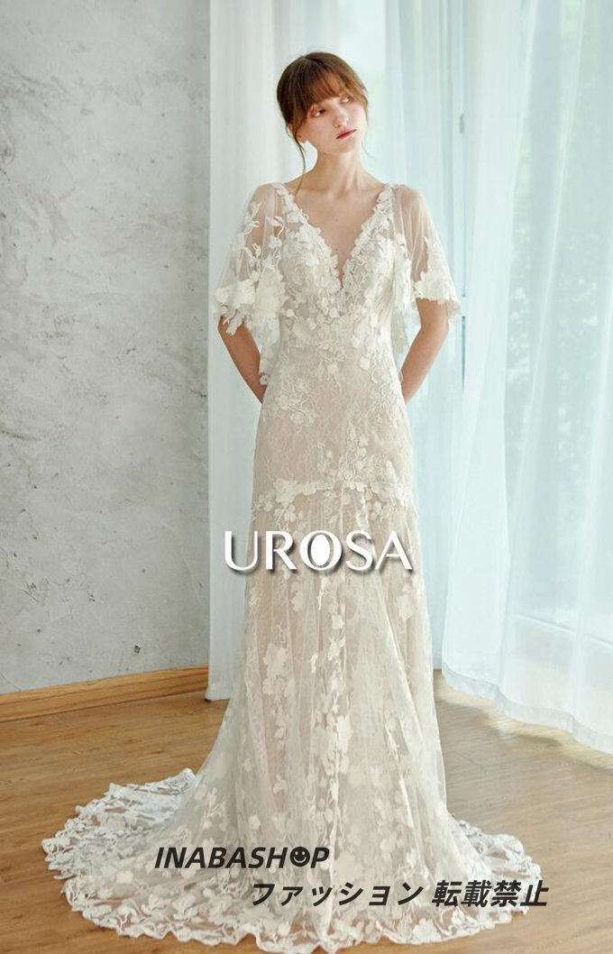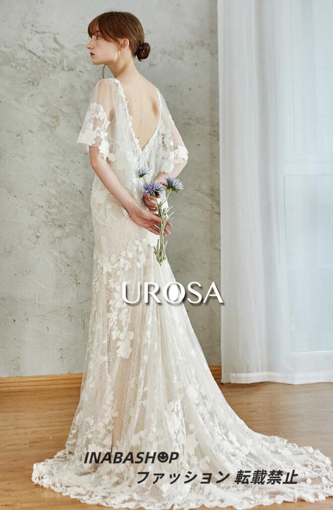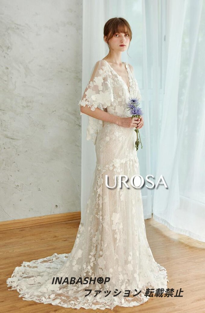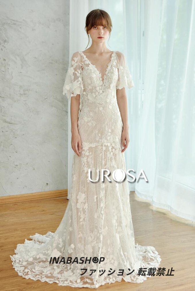 ウエディングドレス ウェディングドレス マーメイドライン 袖付き マーメイドドレス 袖レース Vネック 結婚式 フィッシュテール 袖あり