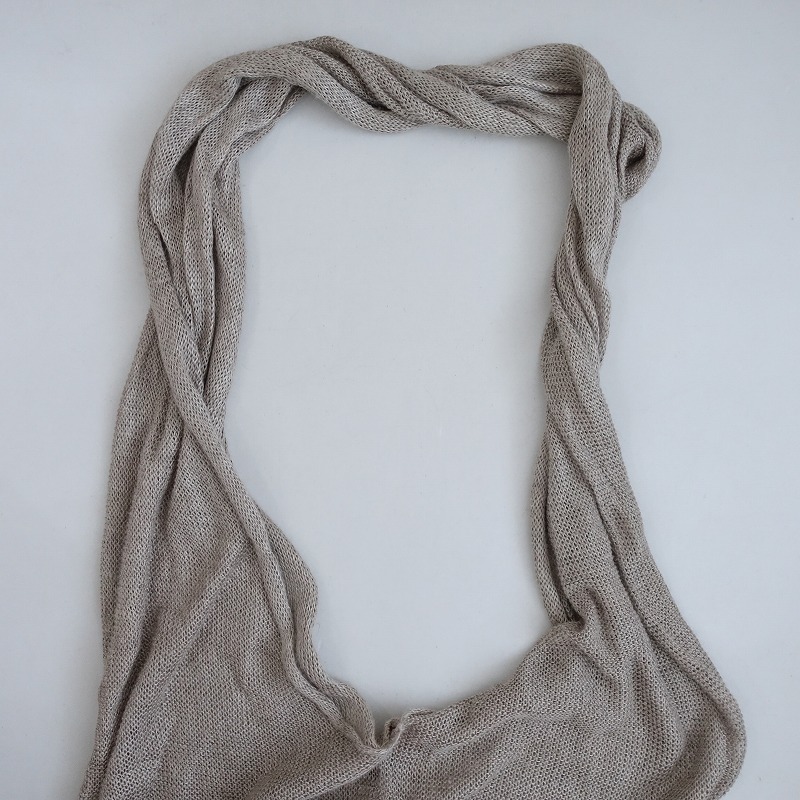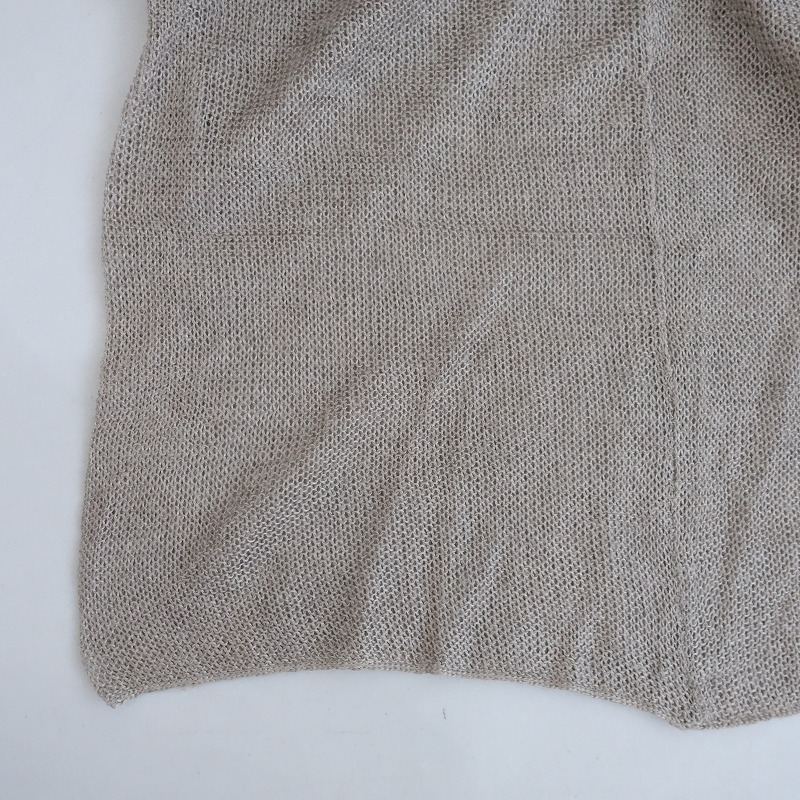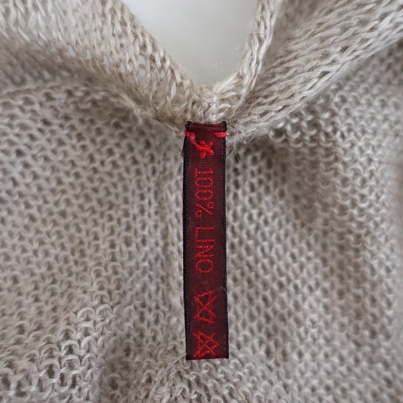 DANIELA GREGISのリネンホルターネックベストです。カラーはナチュラルベージュで、甘織りのリネンのニット地で仕立てられています。ホルターネックのプルオーバータイプです。 |