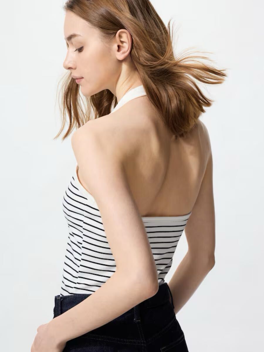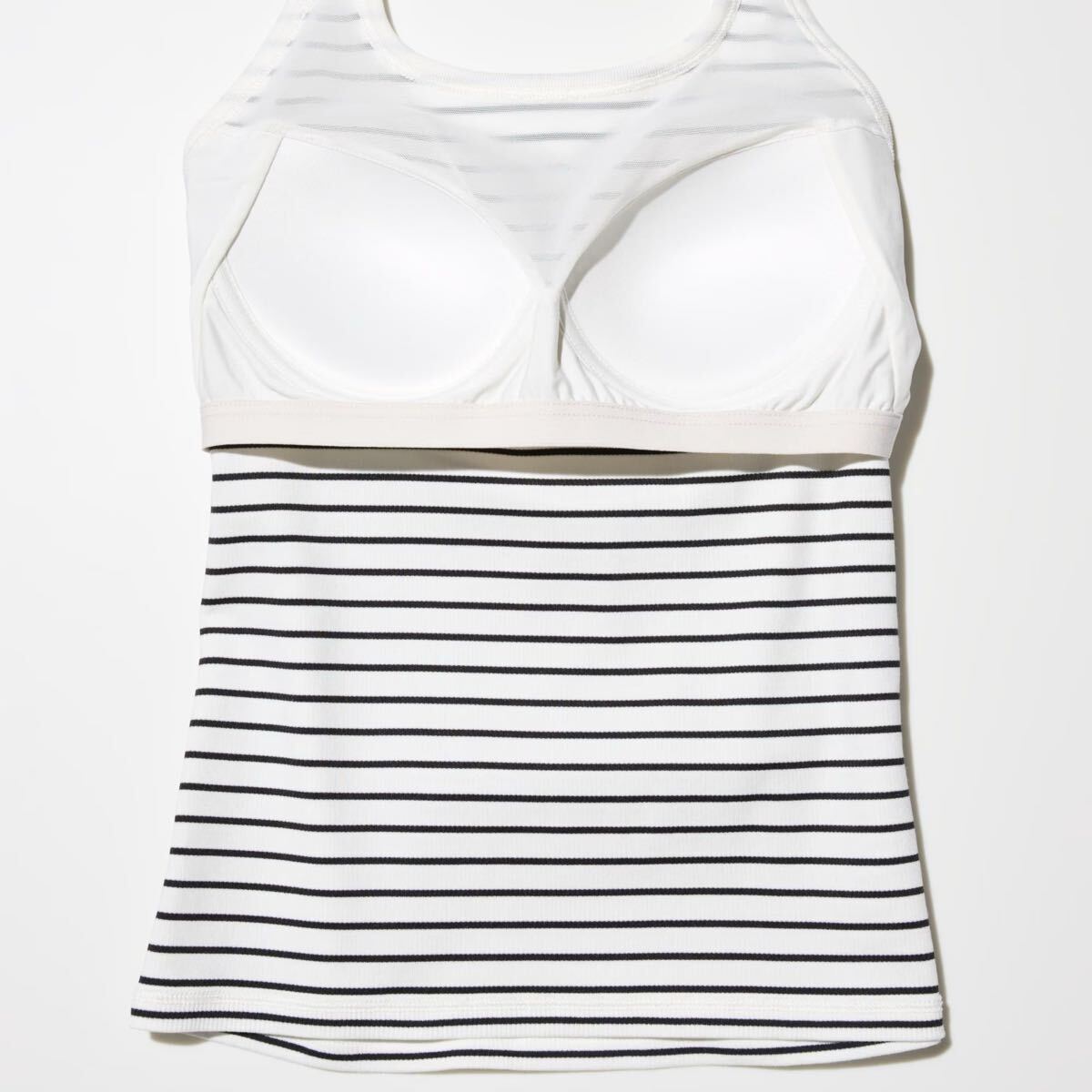 - ブラ内蔵なので肩ひもを気にせず、ヘルシーな肌見せスタイルを楽しめる。