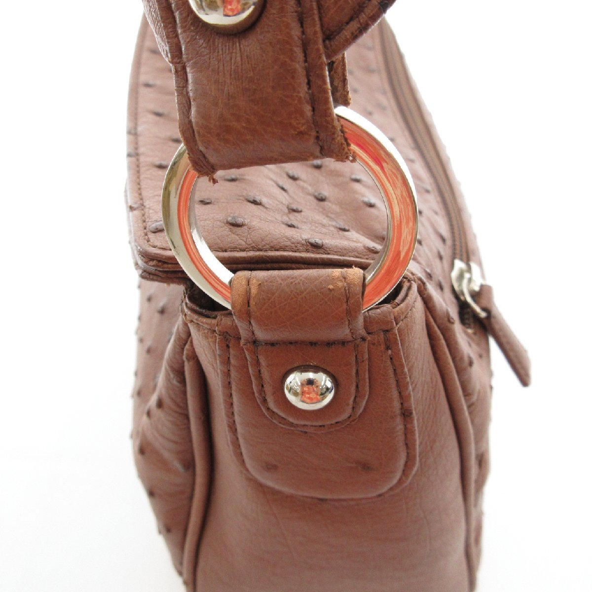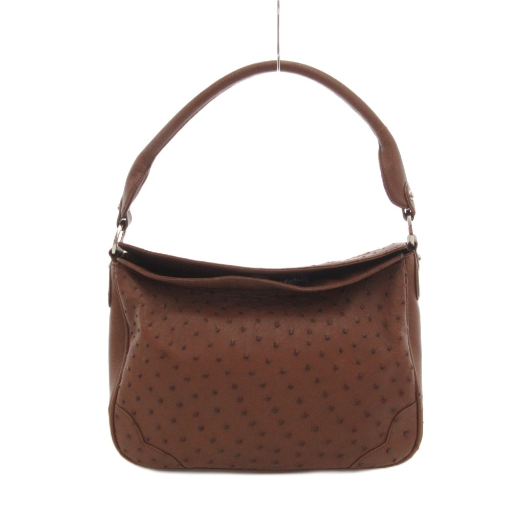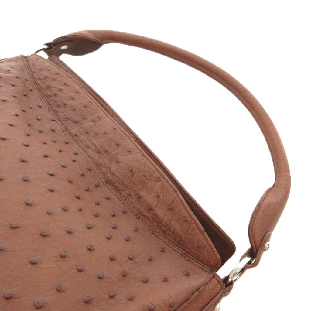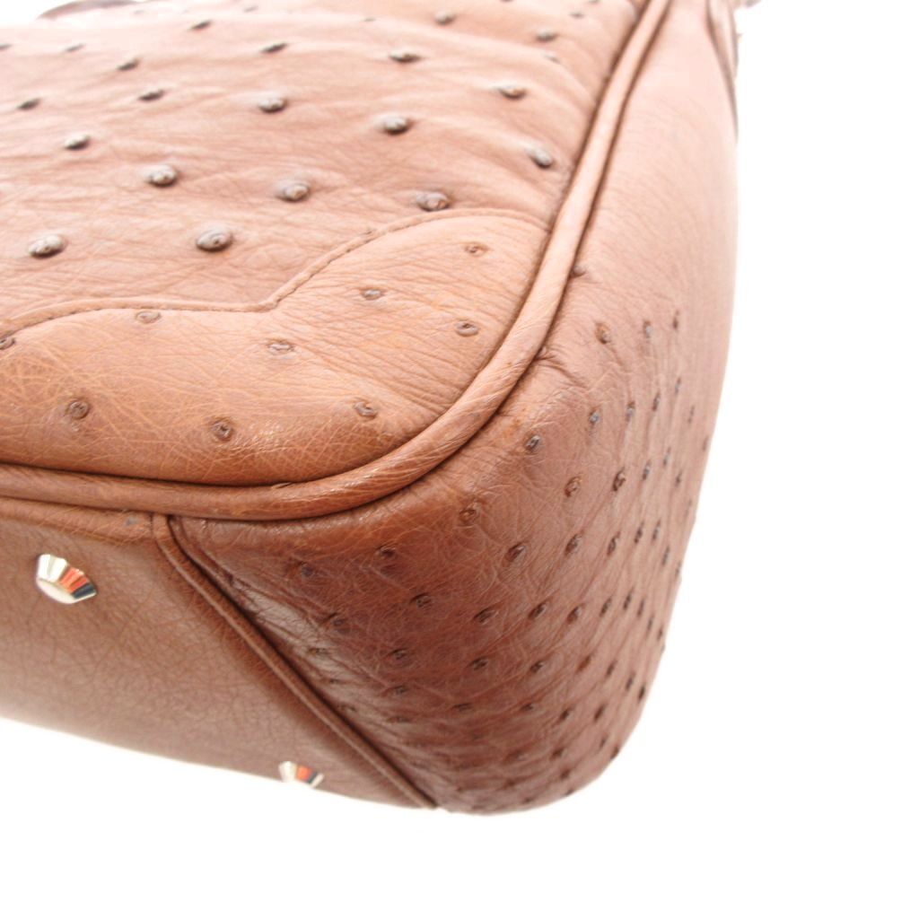 JRAタグ ワンショルダーバッグ オーストリッチ レザー 革 茶 ブラウン /UO レディース