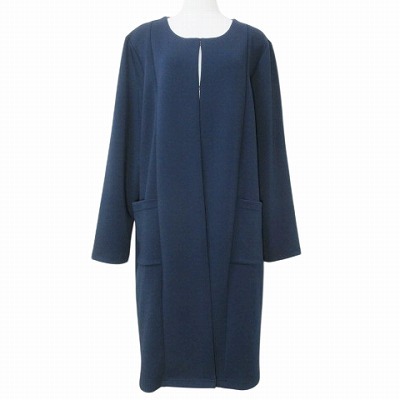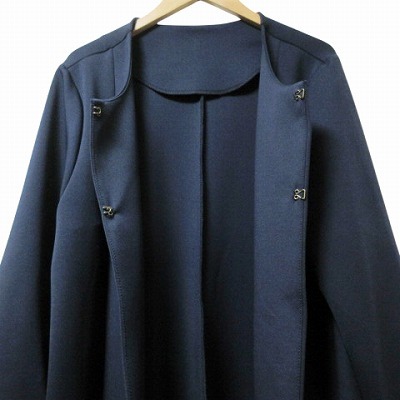 レスピーギ RESPIGHI FEMME ノーカラーロングジャケット コート ジャージー素材 40 L相当 紺 ネイビー X レディース