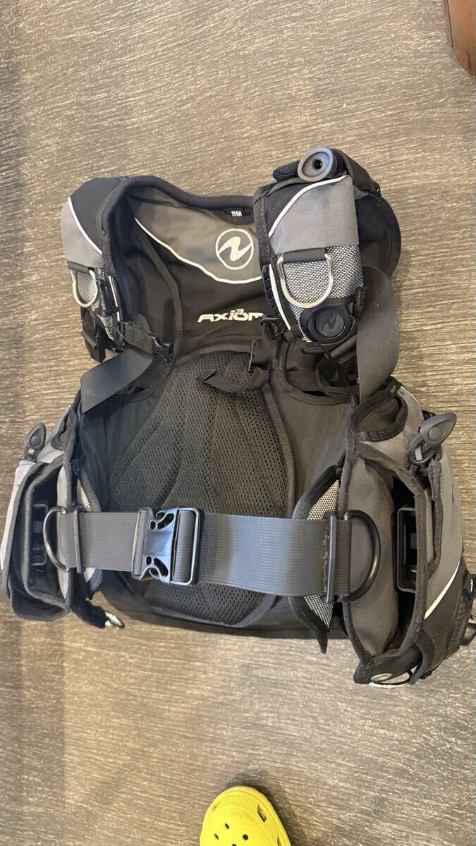 アクアラングのサイズは分かりづらくBCのタグに書かれている表記は【SM】となります。
