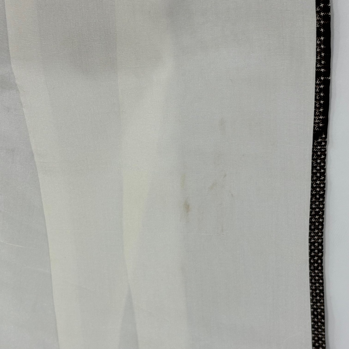 | 普段着やおしゃれ着として人気の紬でございます。 元々は日常着として着用していたので、その土地の風土に合った様々な種類がある素敵な一品です。 ※身丈・裄丈の縫込みの長さは測っておりません。 上前と後身頃にシミ、衿周りや両袖口中に汚れがございます。 裏地所々にシミがございます。 リユース品としては良い状態で、まだまだご活用頂けると思われます。 ※なお、厳しく商品の状態確認を行っておりますが、記載の汚れ以外にも見落とし箇所がある可能性がある旨ご了承いただけますと幸いです。 沢山の商品の中からご覧いただき誠にありがとうございます。 |