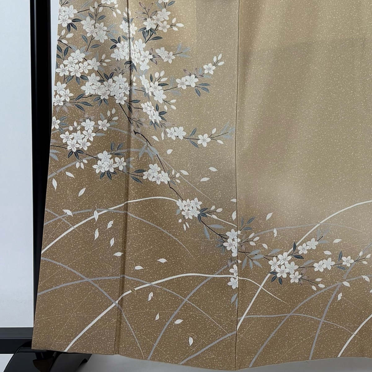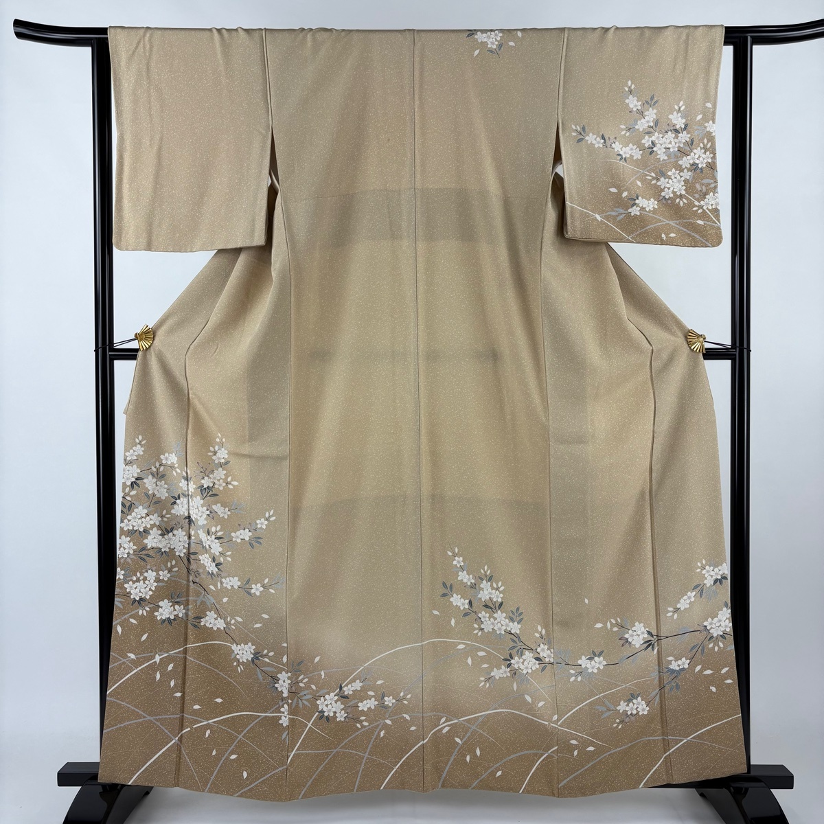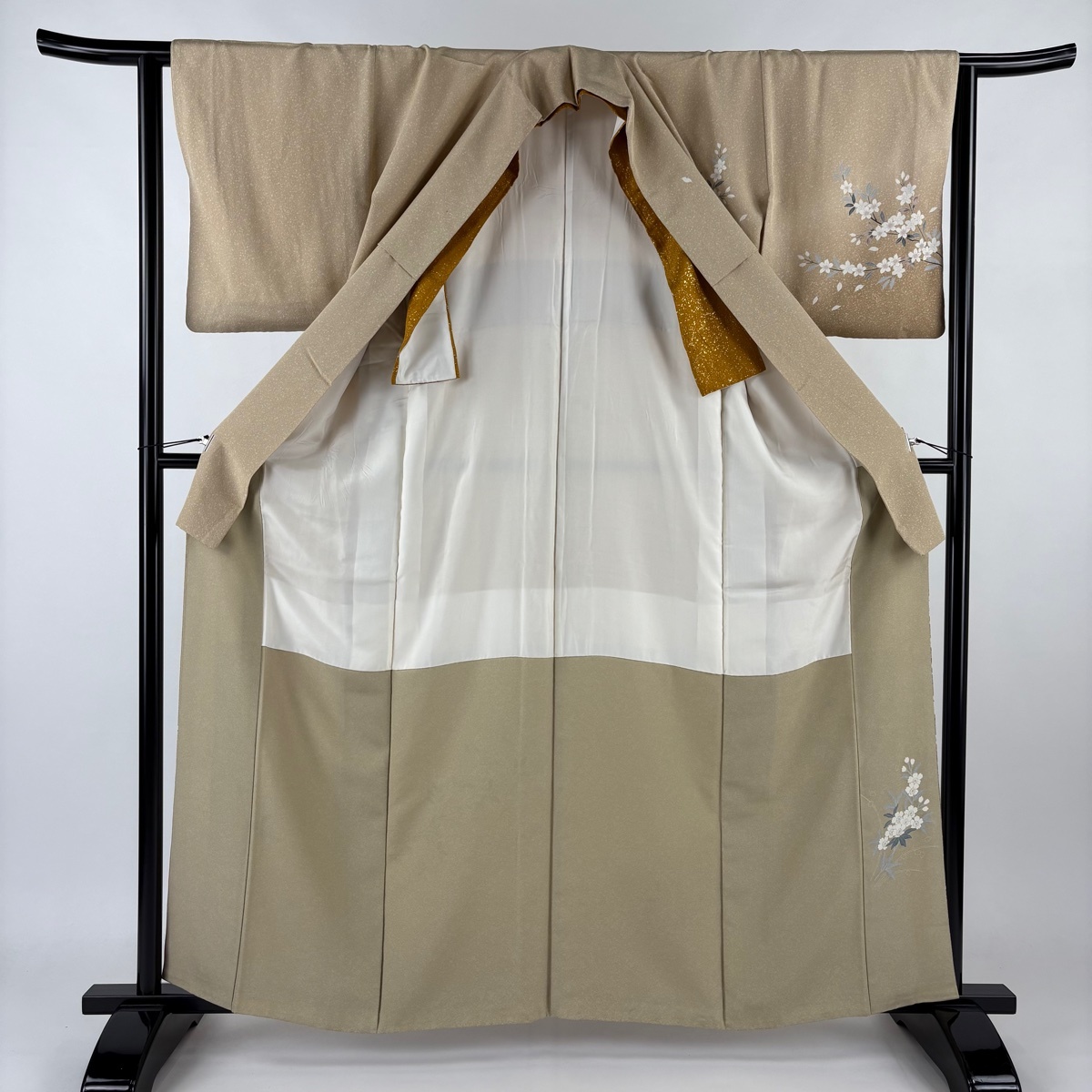 | 訪問着 秀品 枝花 芝 ぼかし 薄茶色 袷 身丈162.5 裄丈62.5 S 正絹 【中古】 |