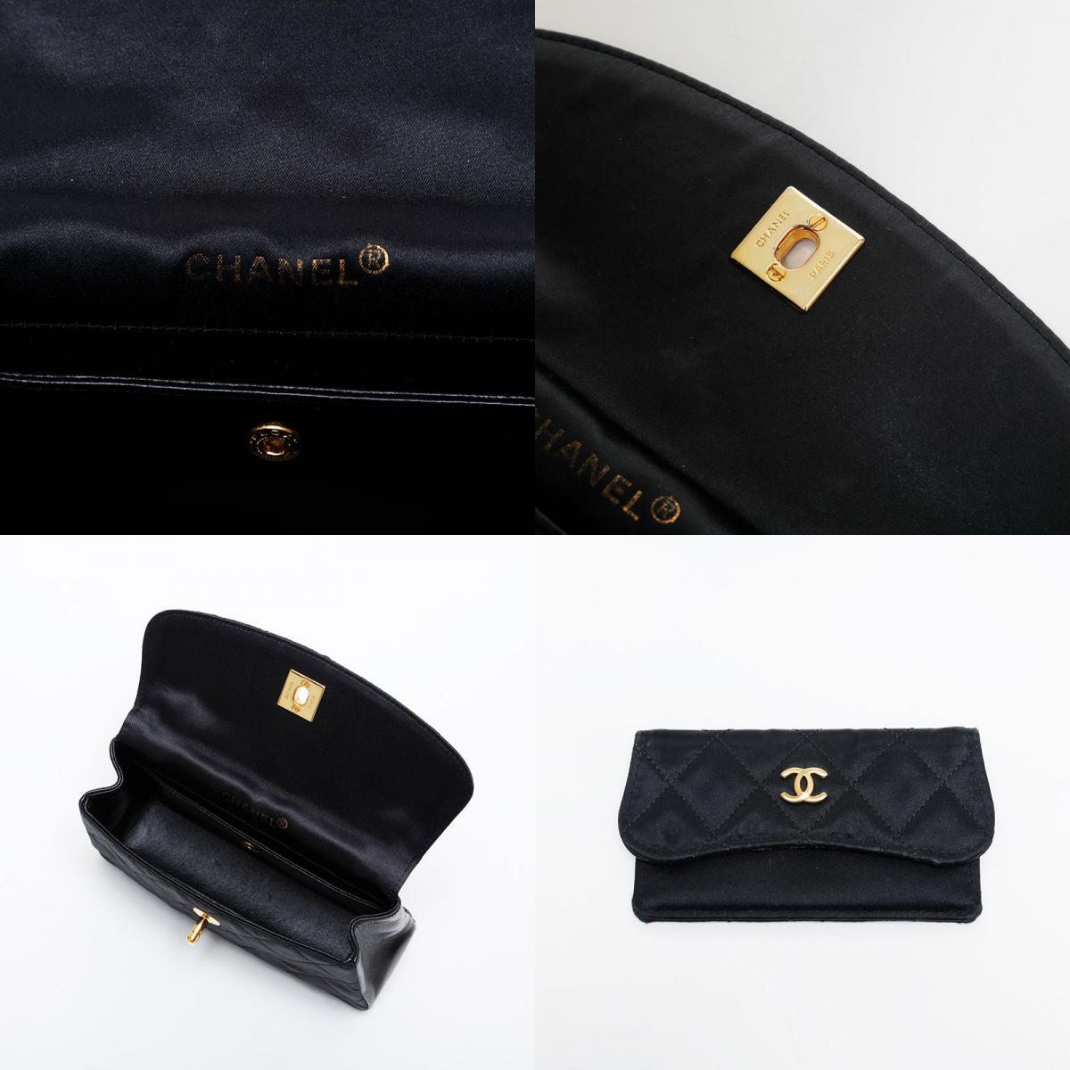 シャネル CHANEL ショルダーバッグ 1番台 1998-1991 サテン チェーン マトラッセ ブラック