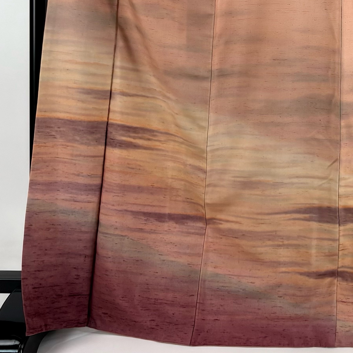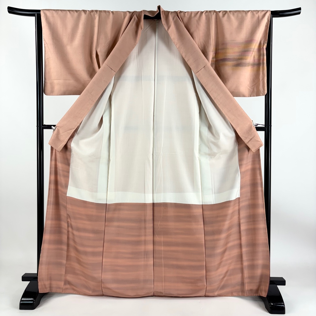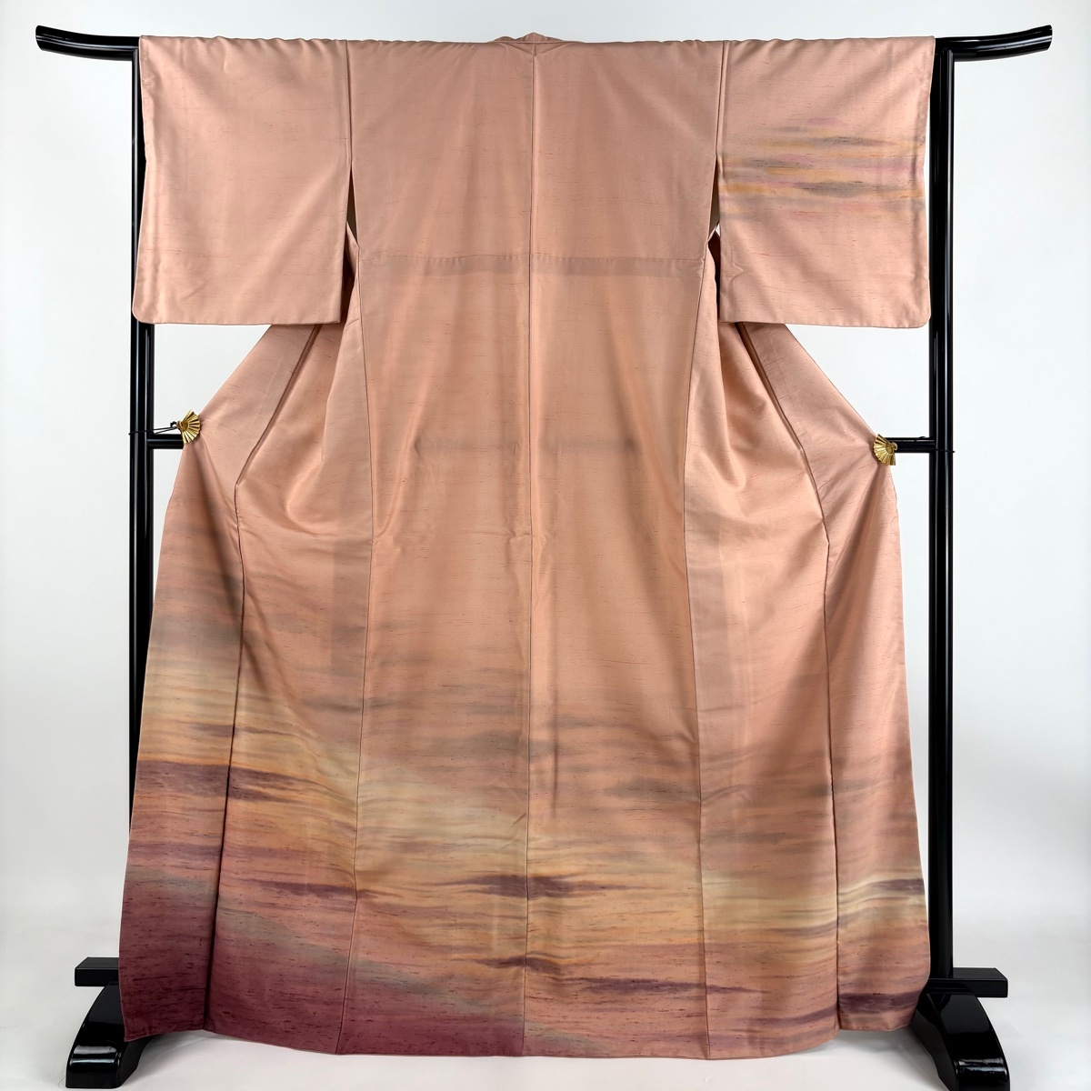 | 付下げ 秀品 紬地 霞 ぼかし サーモンピンク 袷 身丈169.5 裄丈65 M 正絹 【中古】 |