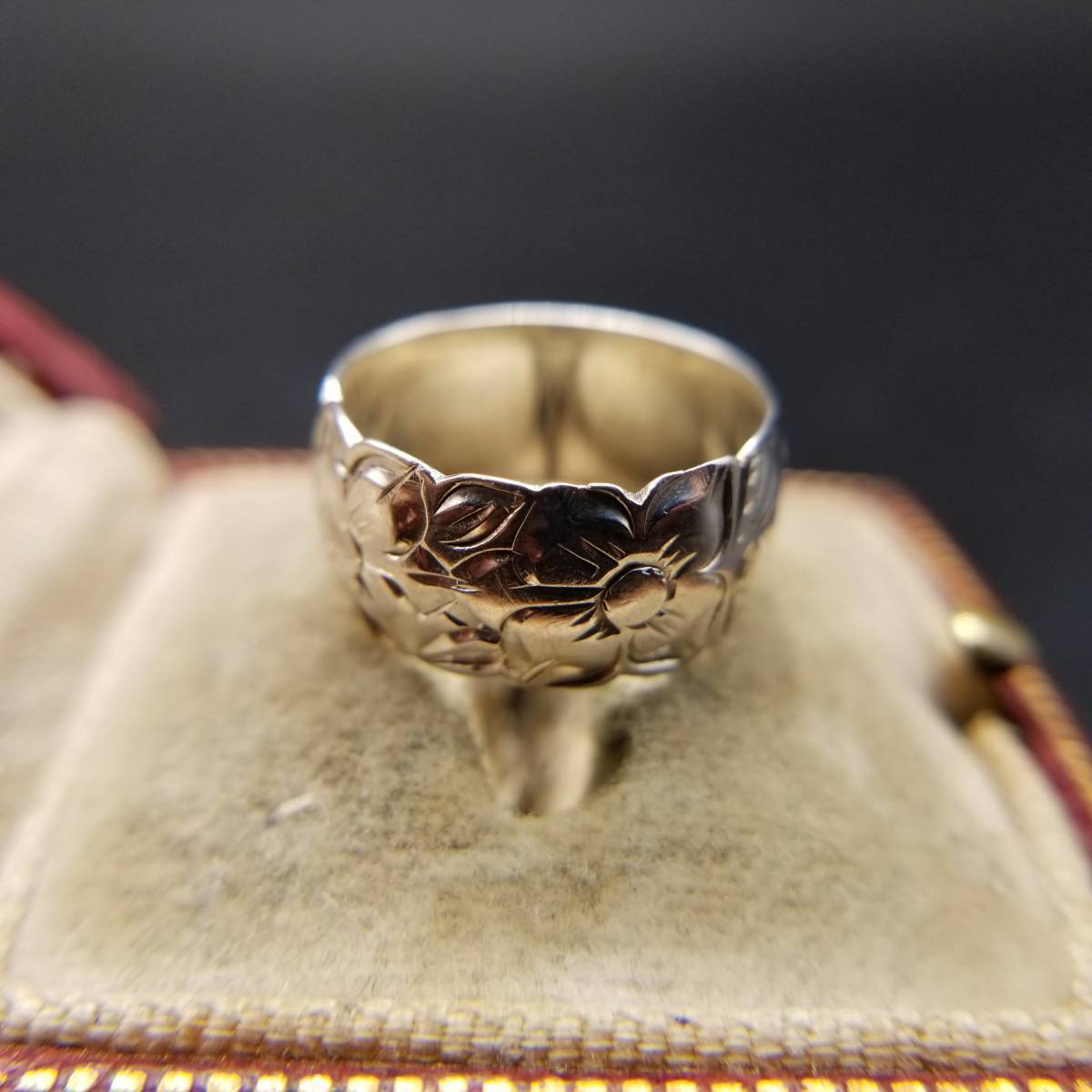 Kuuipo クウイポ  925 シルバー ヴィンテージ バンド リング 銀 幅広 指輪 花 ハワイアンジュエリー 言葉 ピンキー 小さめ Y20-A