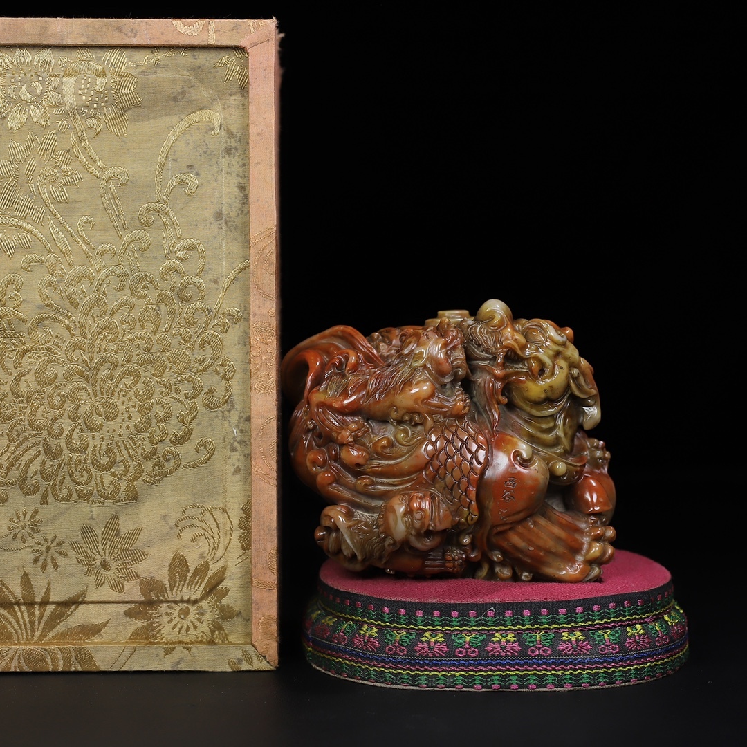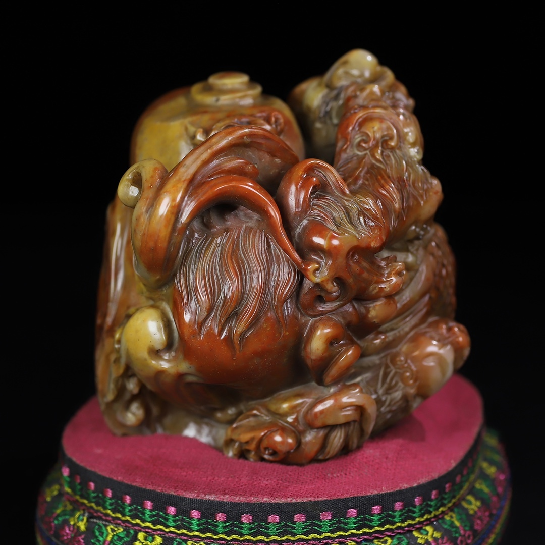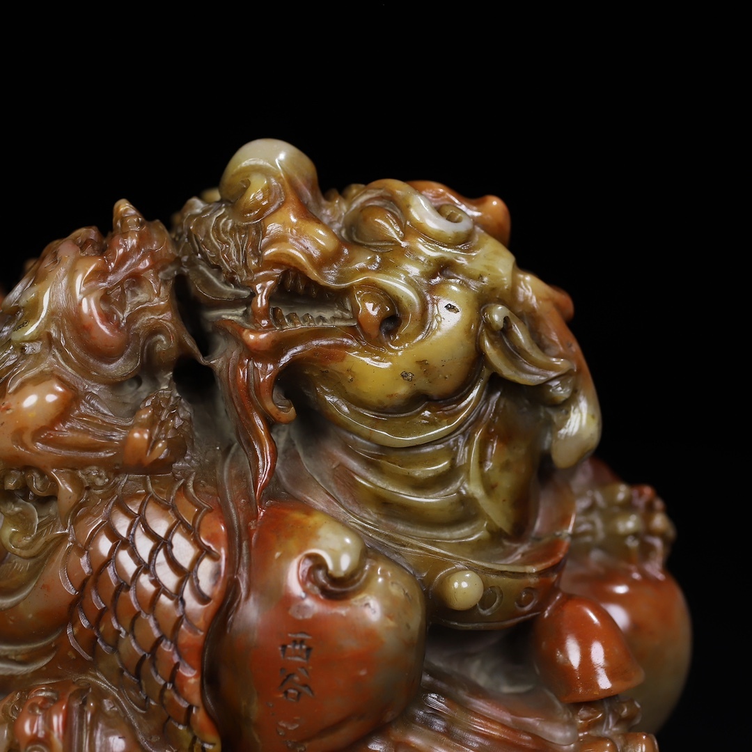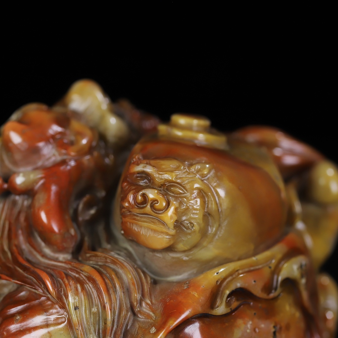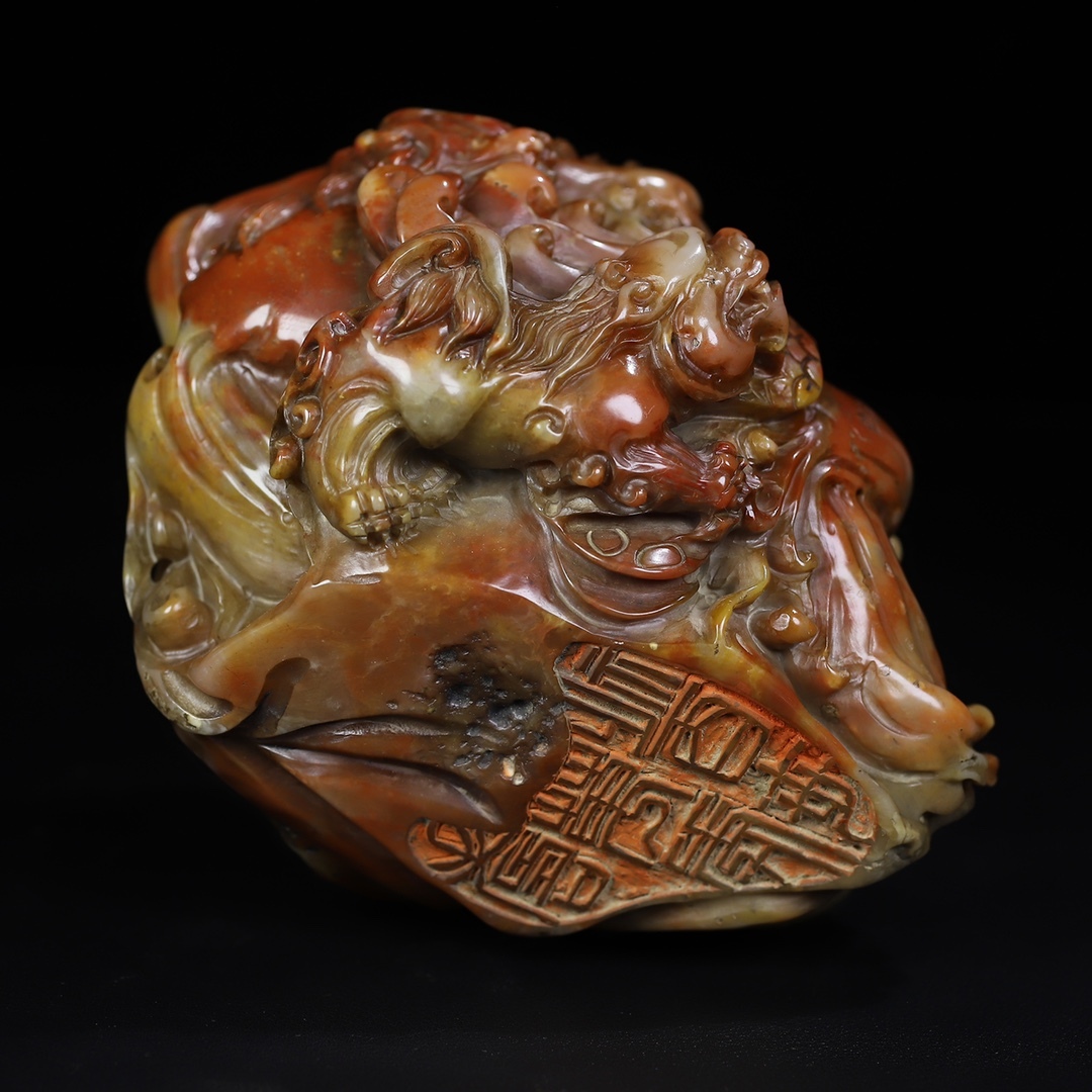 唐物 【清代篆刻家 江尊 号:西谷】寿山石 『瑞獣献福』瑞獣 印鑑 置物 天然石 手彫 篆刻 古印材 極細工 中国古玩 骨董品 古美味 D68
