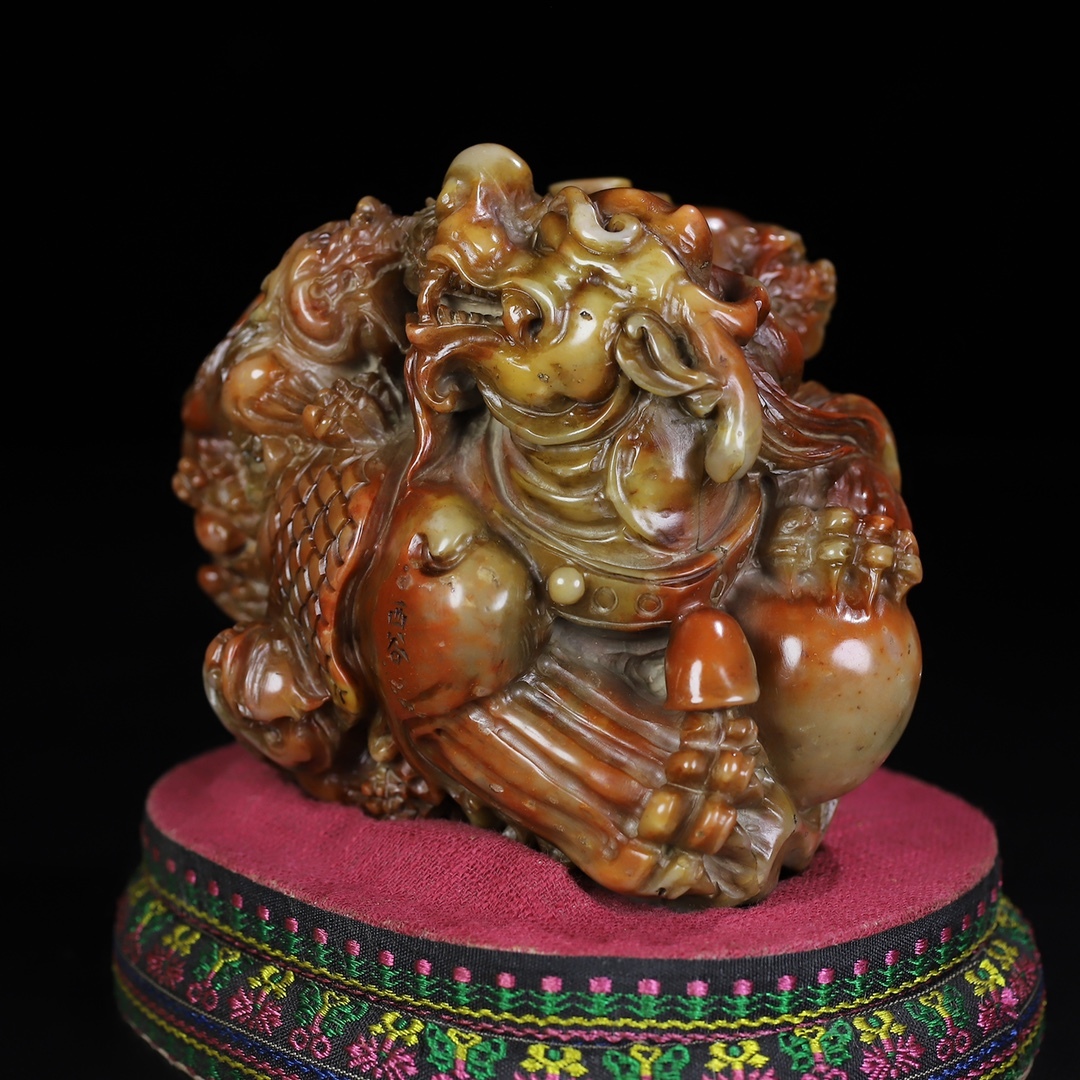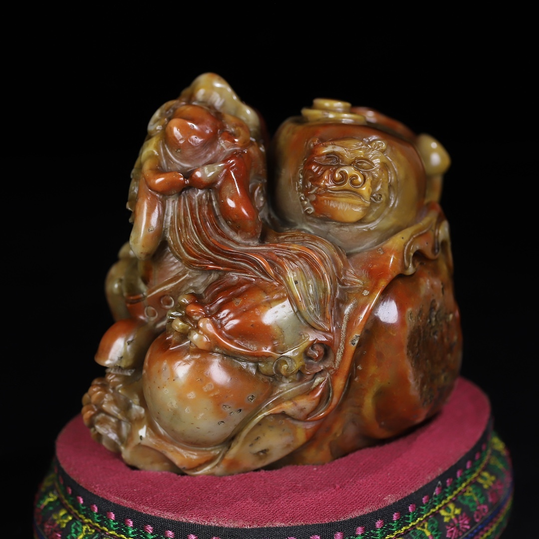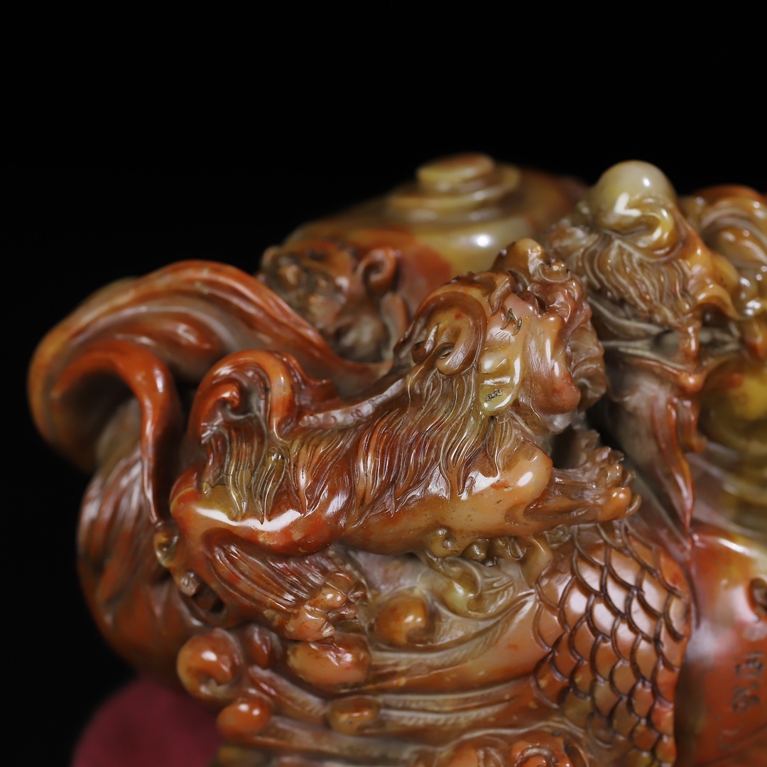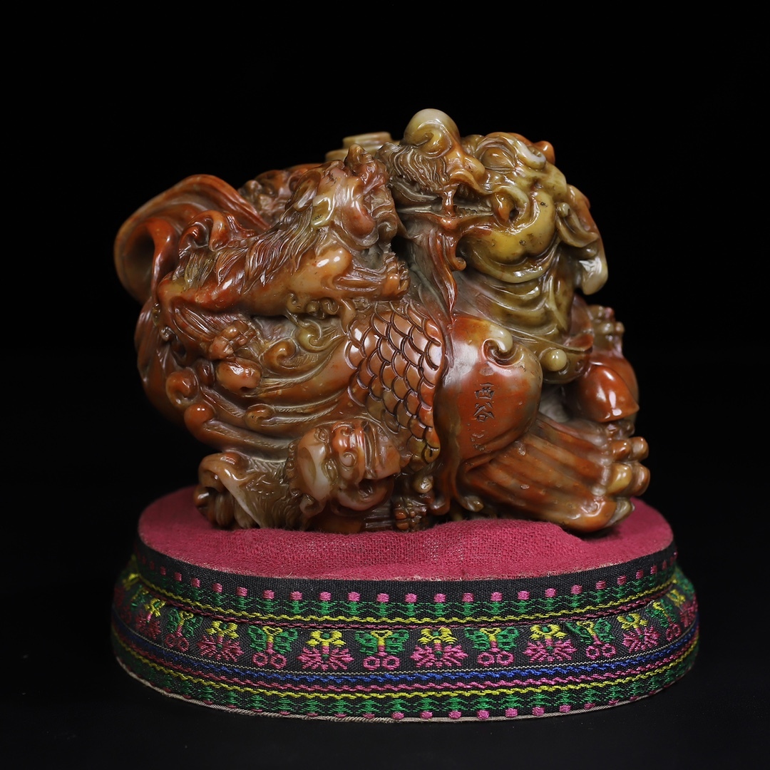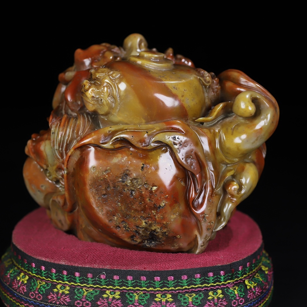 唐物 【清代篆刻家 江尊 号:西谷】寿山石 『瑞獣献福』瑞獣 印鑑 置物 天然石 手彫 篆刻 古印材 極細工 中国古玩 骨董品 古美味 D68