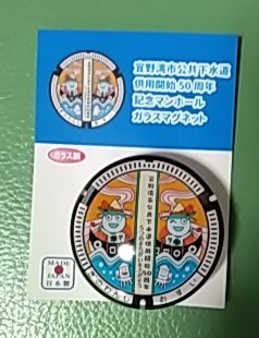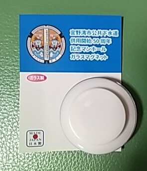 沖縄県宜野湾市のマンホールカードが配布された初期の一時期配布されたグッズです。ガラスマグネットです。直径約4cm、厚さ1,7cm。素材はガラス、マグネット、ABS樹脂です。送料は定形外郵便50g以内で140円です。コレクションの1つにいかがですか。不明な点はご質問ください。