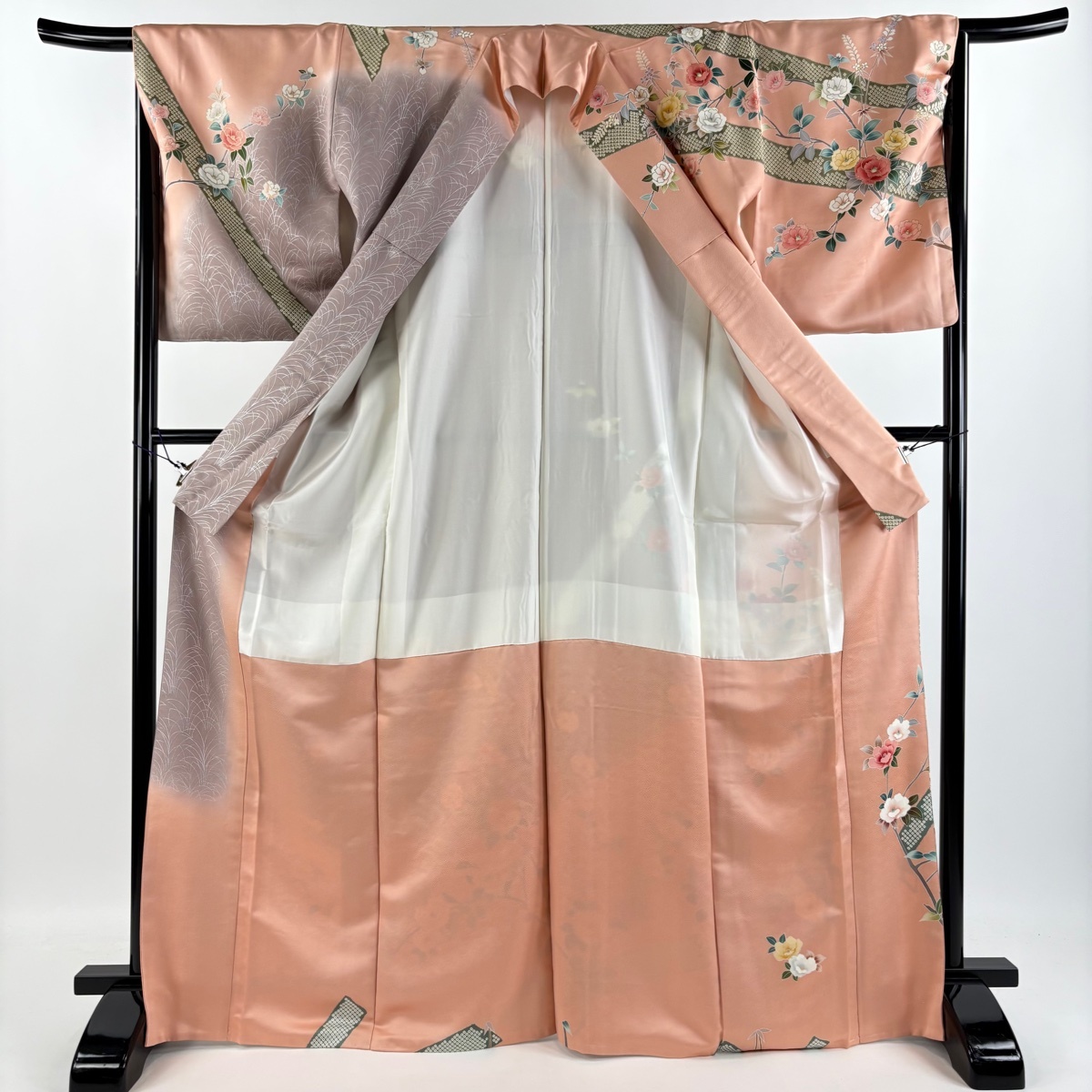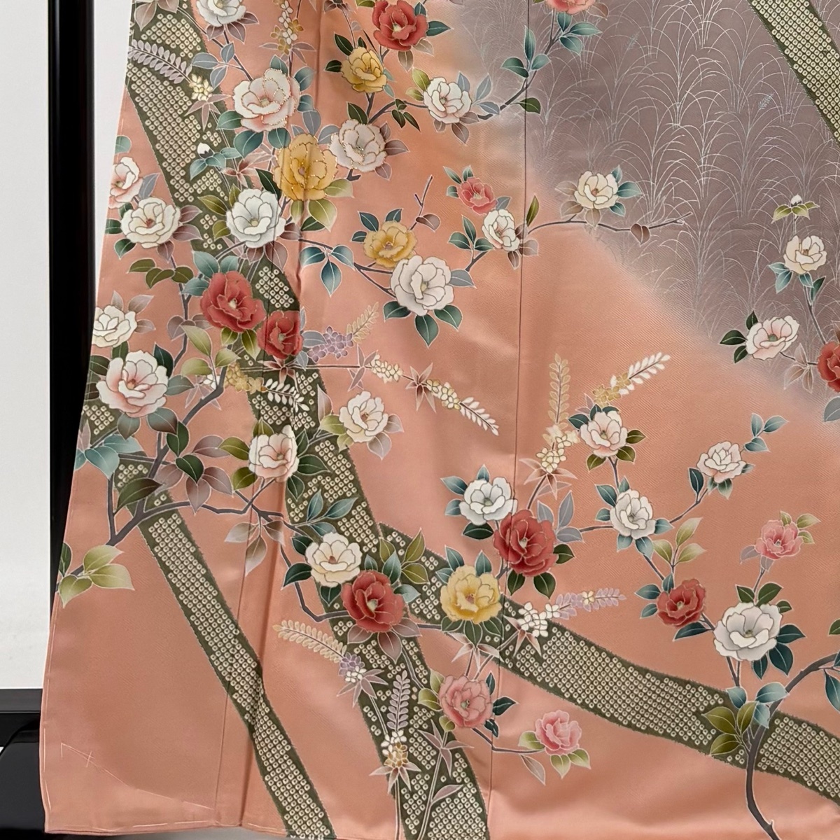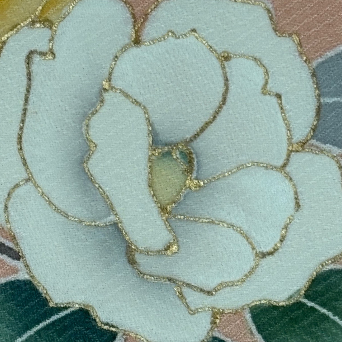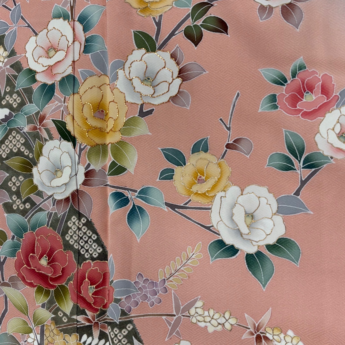 | 訪問着 名品 椿 草花 金銀糸 金彩 ピンク 袷 身丈168 裄丈65.5 M 正絹 【中古】 |