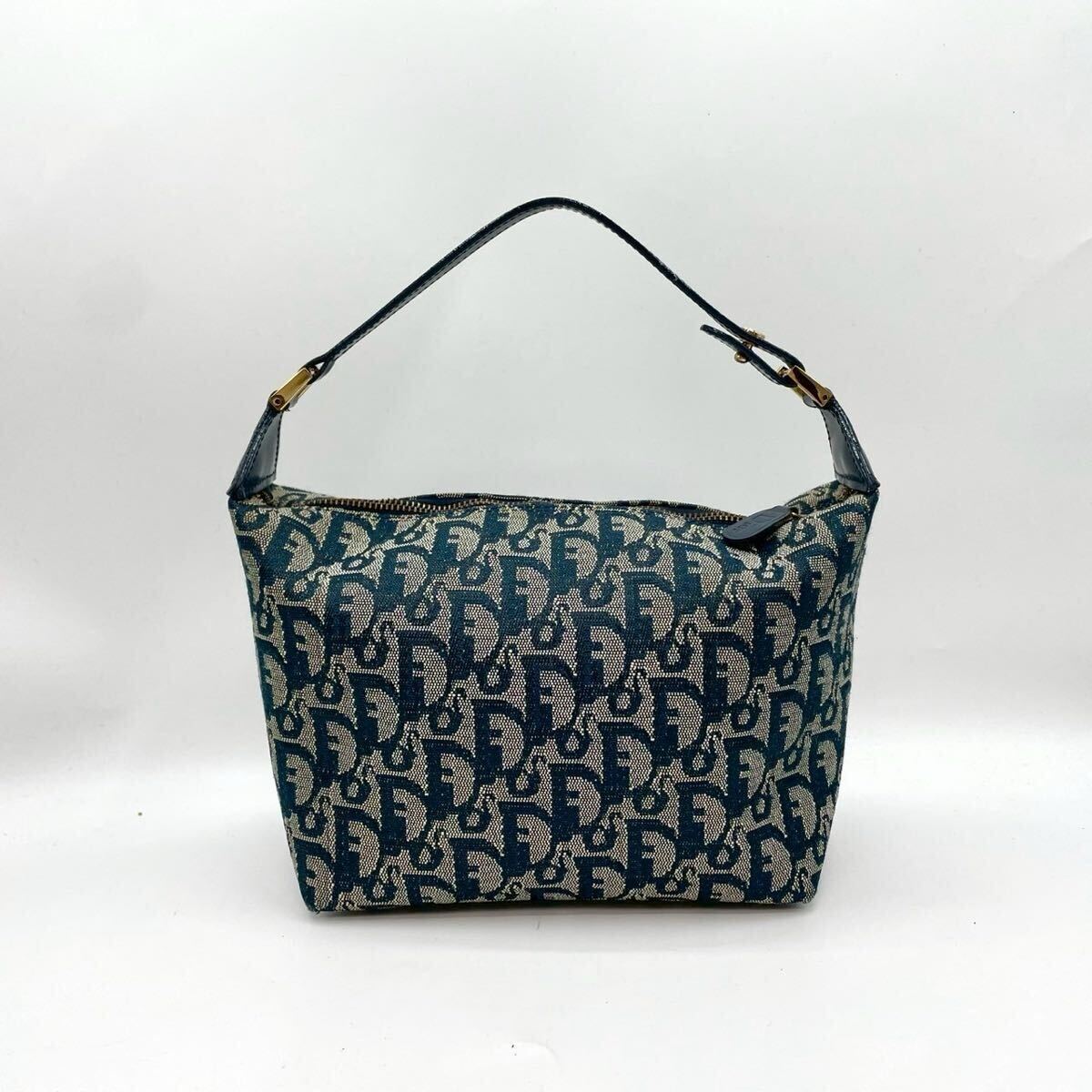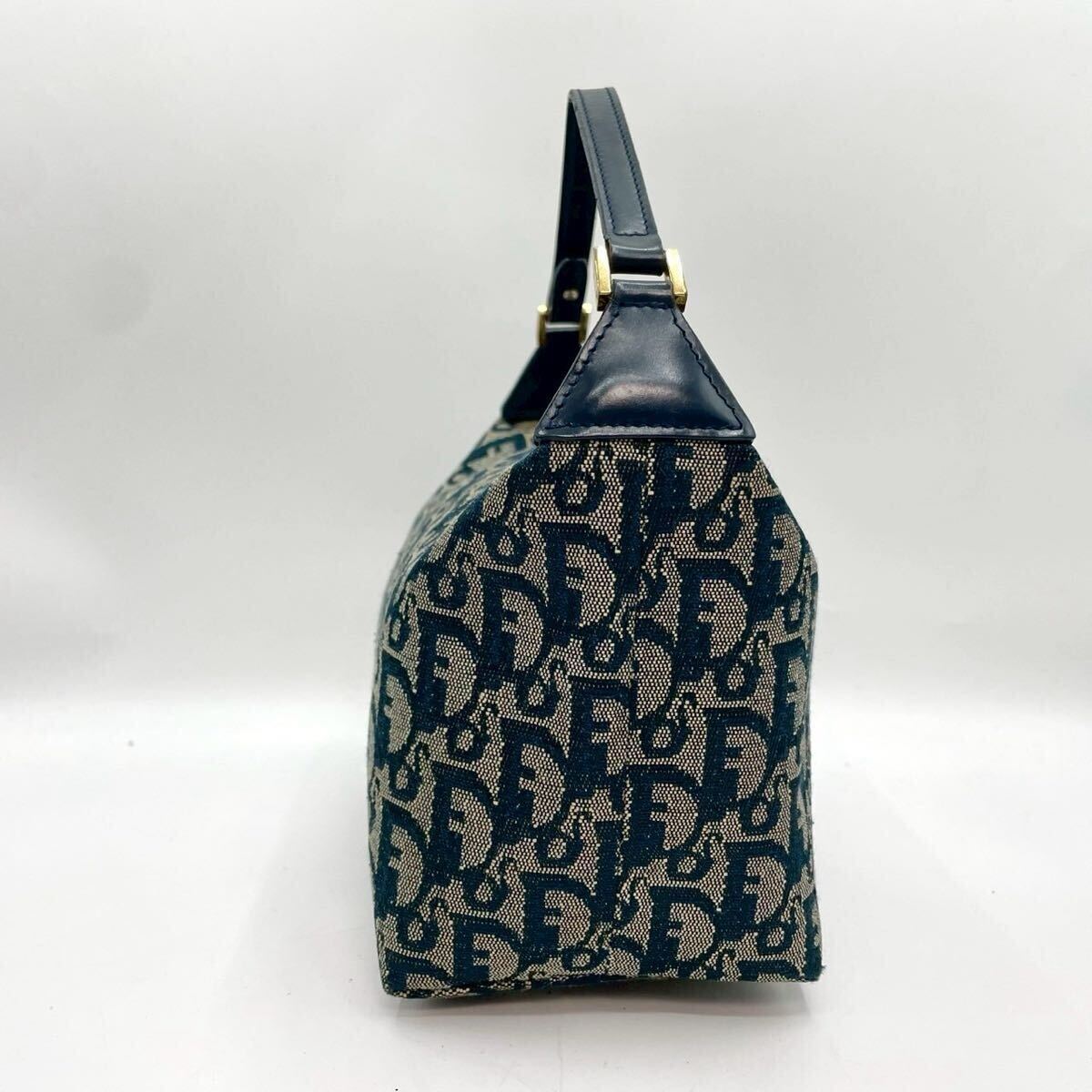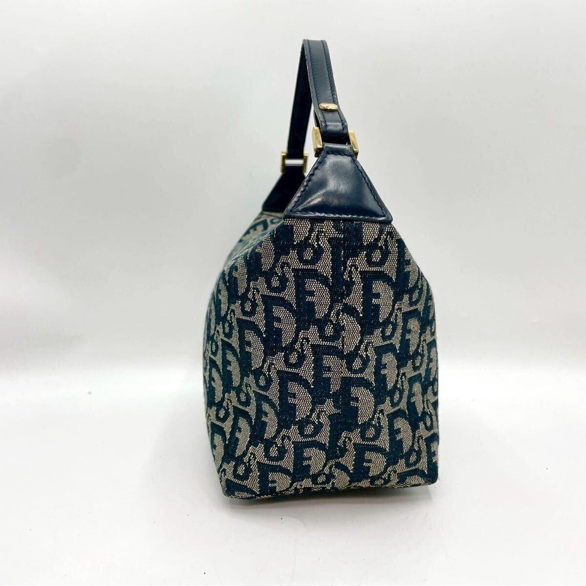 ◎極美品◎ Christian Dior クリスチャンディオール ハンドバッグ アクセサリーポーチ トロッター ネイビー レザー バニティバッグ