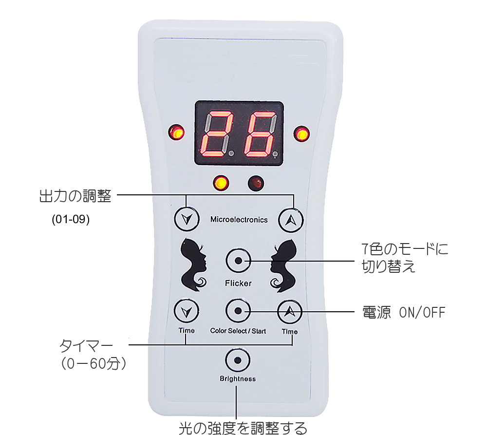 出力は1から9段階に変更可能です。効果に合わせて7種類の波長に切り替えられます。